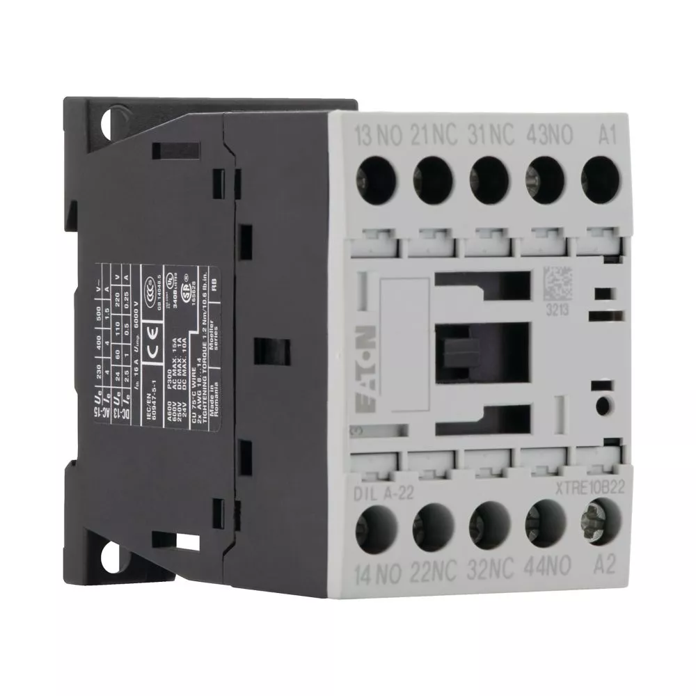 Hulprelais, assortiment: DILA relais, toepassing: magneetschakelaar, beschrijving: Basisapparaten met positieve bedieningscontacten, aansluittechniek: schroefklemmen, nominale bedrijfsstroom AC-15 220 V 230 V 240 V: Ie= 4 A, 380 V 400 V 415 V: Ie= 4 A, contacten no = normaal open: 2 no, contacten nc = normaal gesloten: 2 nc, codenummer en versie van combinatie specifiek nummer: 22D, kan worden gecombineerd met hulpcontactmodule: DILA-XHI(V)…, stuurspanning: 110 V 50 Hz, 120 V 60 Hz, spanning AC/DC: AC-bedrijf, beschermingsgraad: IP20, instructies: contactnummers volgens EN 50011, markeringen op spoelklemmen volgens EN 50005