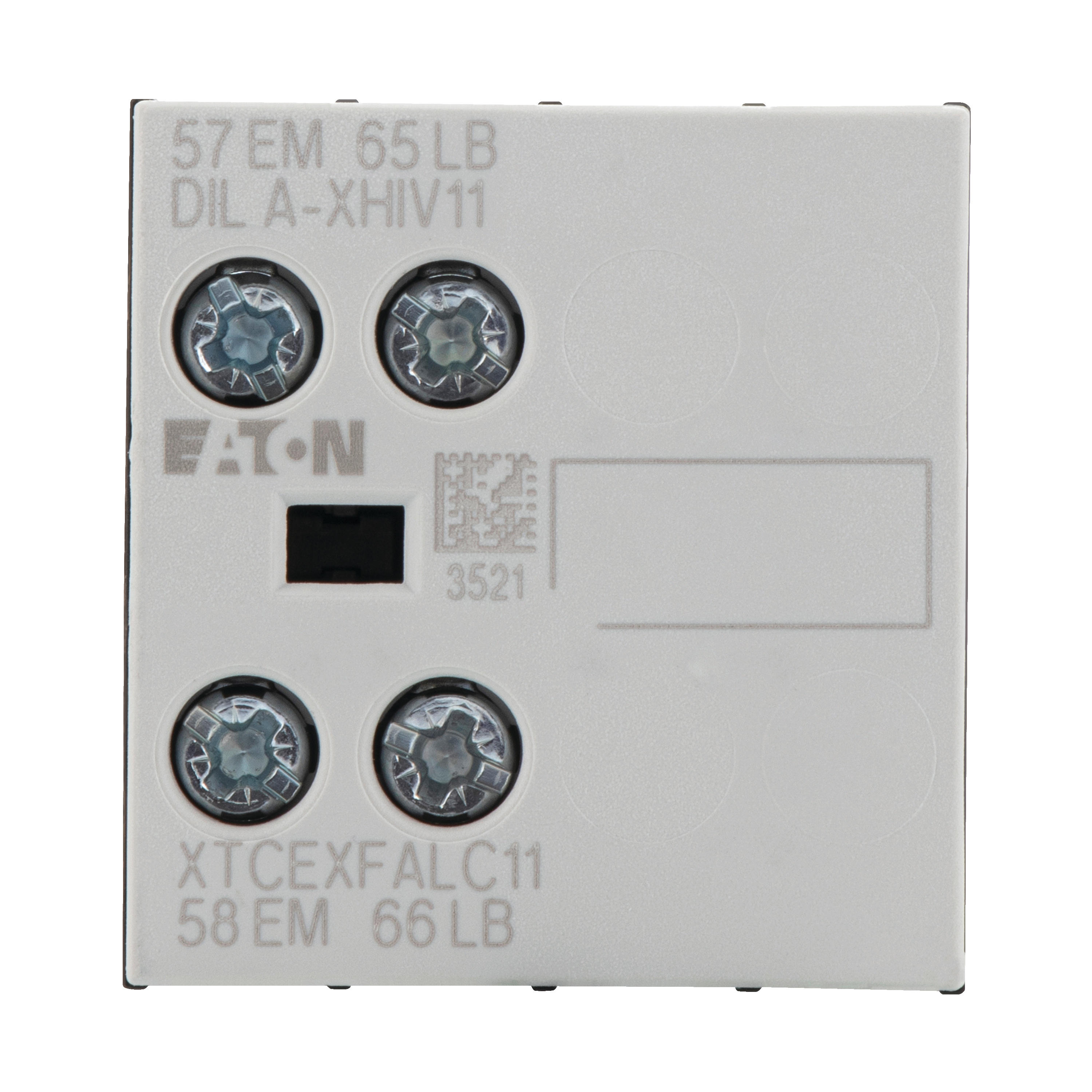 Hulpcontactblok, functie: voor standaard toepassingen, 2-polig, aansluittechniek: schroefklemmen, nominale bedrijfsstroom AC-15 220 V 230 V 240 V: Ie= 4 A, nominale bedrijfsstroom AC-15 380 V 400 V 415 V: Ie= 4 A, contacten noe: normaal open voorijlend: 1 noe, contacten ncl = normaal gesloten naijlend: 1 nol, type montage: Frontbevestiging, voor gebruik met: DILA(C)…, DILM(C)7…, DILM(C)9…, DILM(C)12…, DILM(C)15…, DILM(C)17…, DILM(C)25…, DILM(C)32…, DILM38…, DILMP20…, DILMP32…, DILMP45…, DILL…, DILMF8…, DILMF11…, DILMF14…, DILMF17…, DILMF25…, DILMF32…, type: frontmontage hulpcontact, codenummer en uitvoering combinatie uniek nummer: 51, 42