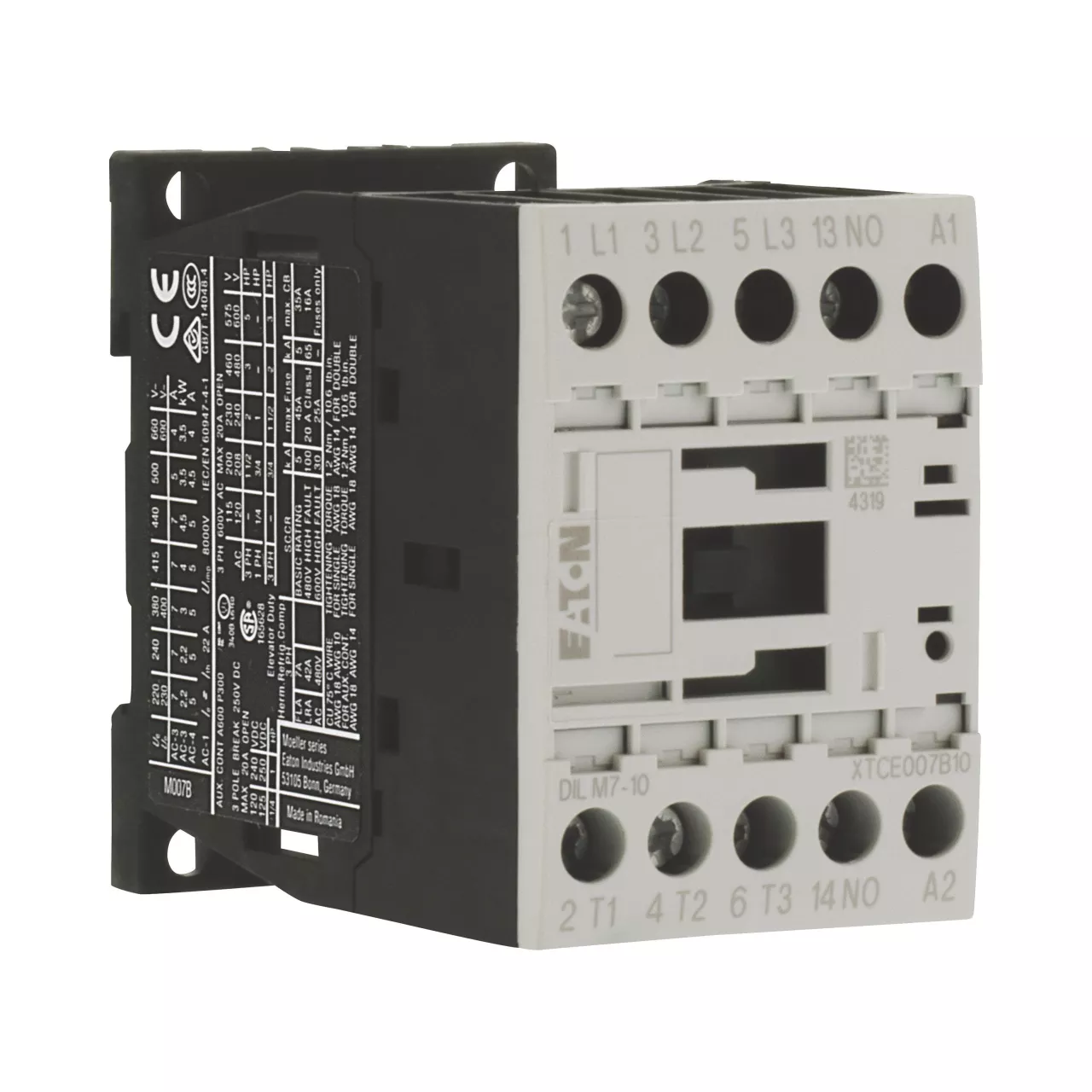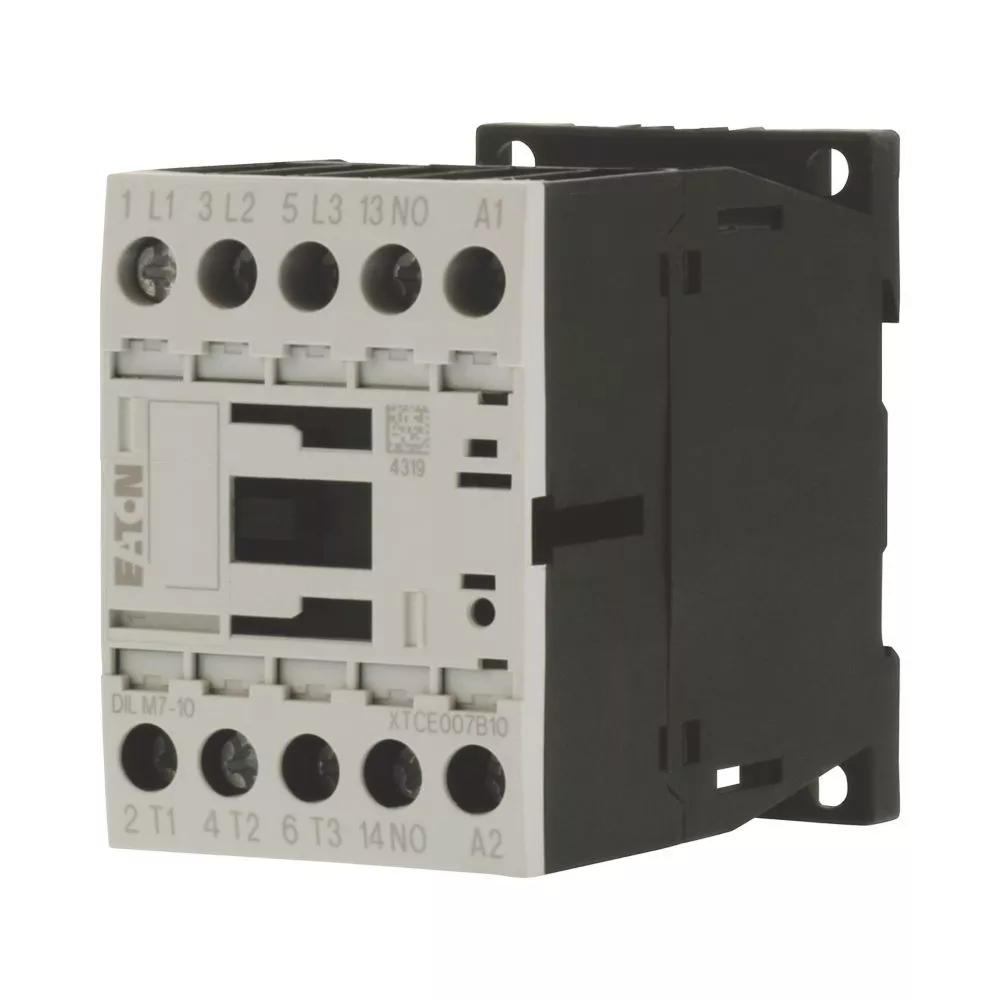 Stycznik, Zastosowanie: Styczniki do silników, Styczniki do 170 A, 3-biegunowy, Kategoria użytkowa: AC-1: Obciążenia nieindukcyjne lub obciążenia o małej indukcyjności, piece oporowe, NAC-3: Standardowe silniki indukcyjne AC: rozruch, wyłączanie w trakcie pracy, AC-4: Stand. silniki indukcyjne AC: rozruch, podłączanie, cofanie, praca spowolnion, Sposób podłączenia: Zaciski śrubowe, Uwagi: Odpowiednie również dla silników o klasie sprawności IE3., Urządzenia spełniające normy IE3 są oznaczone odpowiednim logo na opakowaniu., Liczba biegunów: 3-biegunowy, Znamionowy prąd roboczy AC-3, 380 V 400 V: Ie= 7 A, Znamionowy prąd roboczy AC-1 Prąd cieplny umowny na wolnym powietrzu, 3-biegunowy