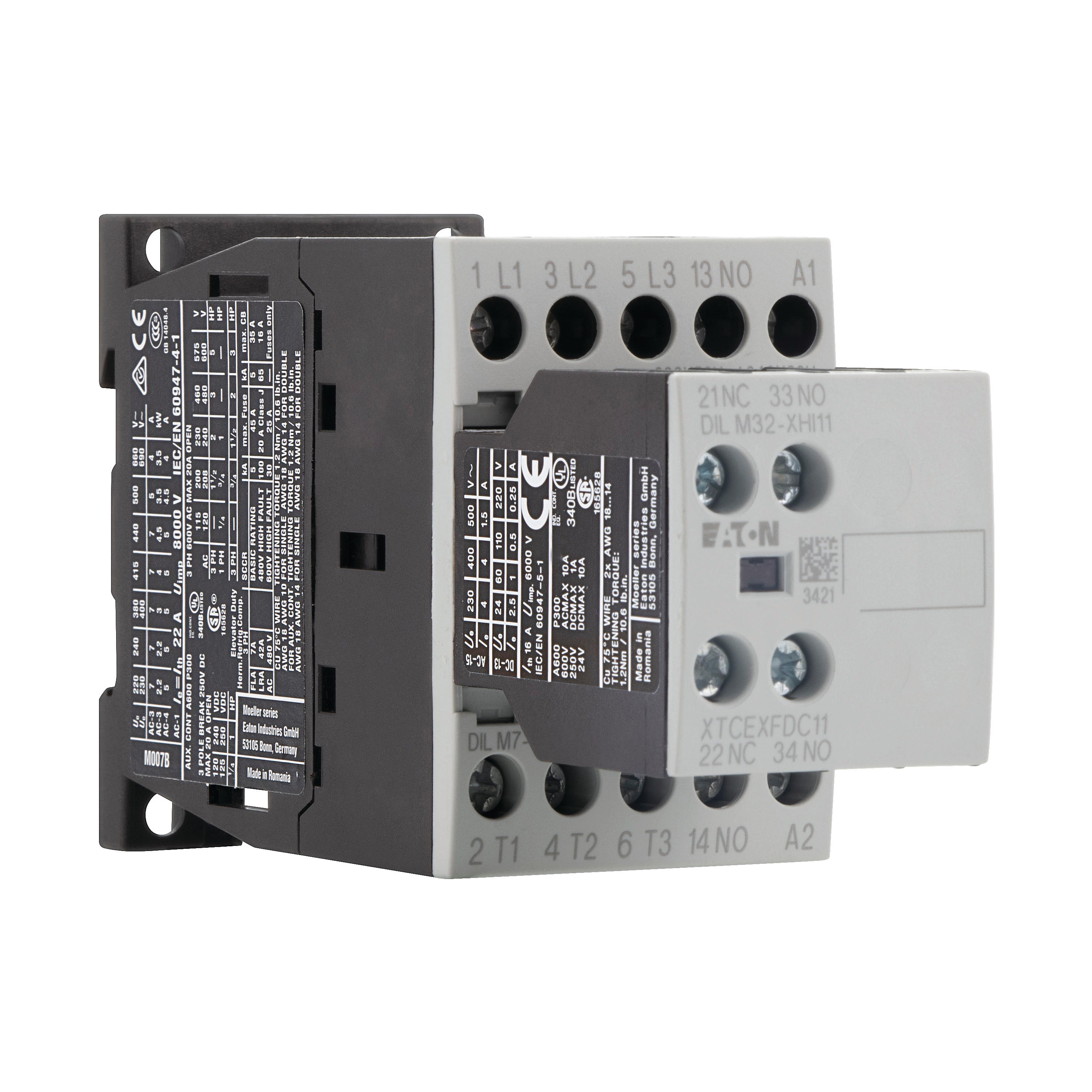Magneetschakelaar, toepassing: Magneetschakelaars voor motoren, complete apparaten tot 170 A, gebruikscategorie: AC-1: Niet-inductieve of licht inductieve belastingen, weerstand ovens, NAC-3: Normale AC-inductiemotoren: Starten, uitschakelen tijdens bedrijf, AC-4: Normale AC-inductiemotoren: Starten, tegenstroomremmen, omkeren, tippen, aansluittechniek: Schroefklemmen, opmerkingen: Ook geschikt voor motoren met efficiëntieklasse IE3. IE3-ready apparaten zijn te herkennen aan het logo op hun verpakking. Nominale bedrijfsstroom AC-3 380 V 400 V: Ie= 7 A, nominale bedrijfsstroom AC-1 conventionele thermische stroom in vrije lucht, 3-polig