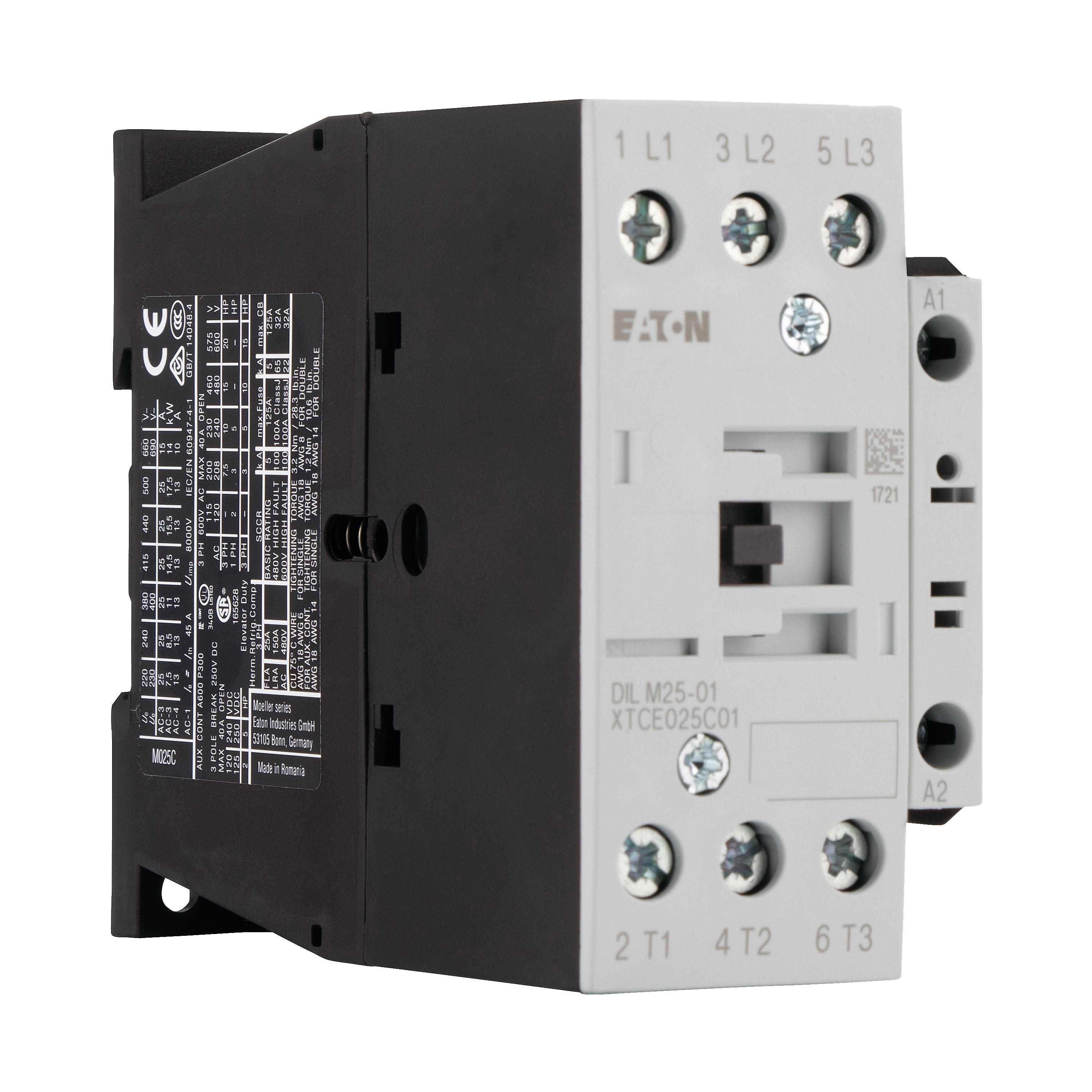Stycznik, Zastosowanie: Styczniki do silników, Styczniki do 170 A, 3-biegunowy, Kategoria użytkowa: AC-1: Obciążenia nieindukcyjne lub obciążenia o małej indukcyjności, piece oporowe, NAC-3: Standardowe silniki indukcyjne AC: rozruch, wyłączanie w trakcie pracy, AC-4: Stand. silniki indukcyjne AC: rozruch, podłączanie, cofanie, praca spowolnion, Sposób podłączenia: Zaciski śrubowe, Uwagi: Odpowiednie również dla silników o klasie sprawności IE3., Urządzenia spełniające normy IE3 są oznaczone odpowiednim logo na opakowaniu., Liczba biegunów: 3-biegunowy, Znamionowy prąd roboczy AC-3, 380 V 400 V: Ie= 25 A, Znamionowy prąd roboczy AC-1 Prąd cieplny umowny na wolnym powietrzu, 3-biegunowy