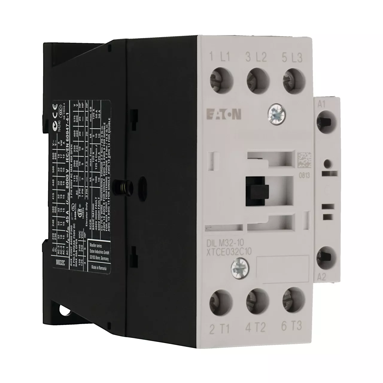 Stycznik, Zastosowanie: Styczniki do silników, Styczniki do 170 A, 3-biegunowy, Kategoria użytkowa: AC-1: Obciążenia nieindukcyjne lub obciążenia o małej indukcyjności, piece oporowe, NAC-3: Standardowe silniki indukcyjne AC: rozruch, wyłączanie w trakcie pracy, AC-4: Stand. silniki indukcyjne AC: rozruch, podłączanie, cofanie, praca spowolnion, Sposób podłączenia: Zaciski śrubowe, Uwagi: Odpowiednie również dla silników o klasie sprawności IE3., Urządzenia spełniające normy IE3 są oznaczone odpowiednim logo na opakowaniu., Liczba biegunów: 3-biegunowy, Znamionowy prąd roboczy AC-3, 380 V 400 V: Ie= 32 A, Znamionowy prąd roboczy AC-1 Prąd cieplny umowny na wolnym powietrzu, 3-biegunowy