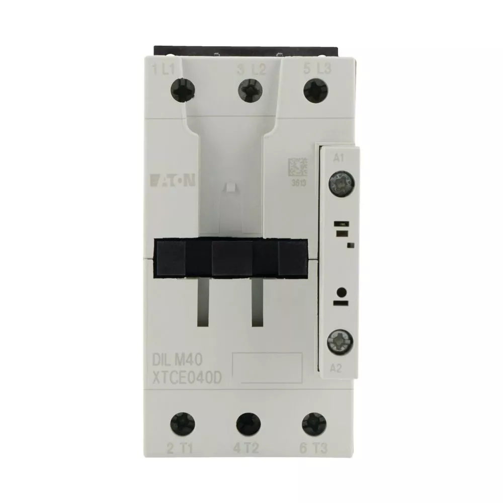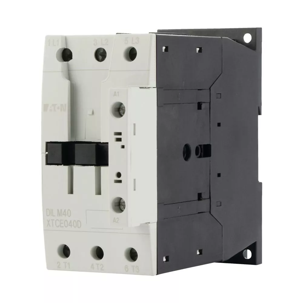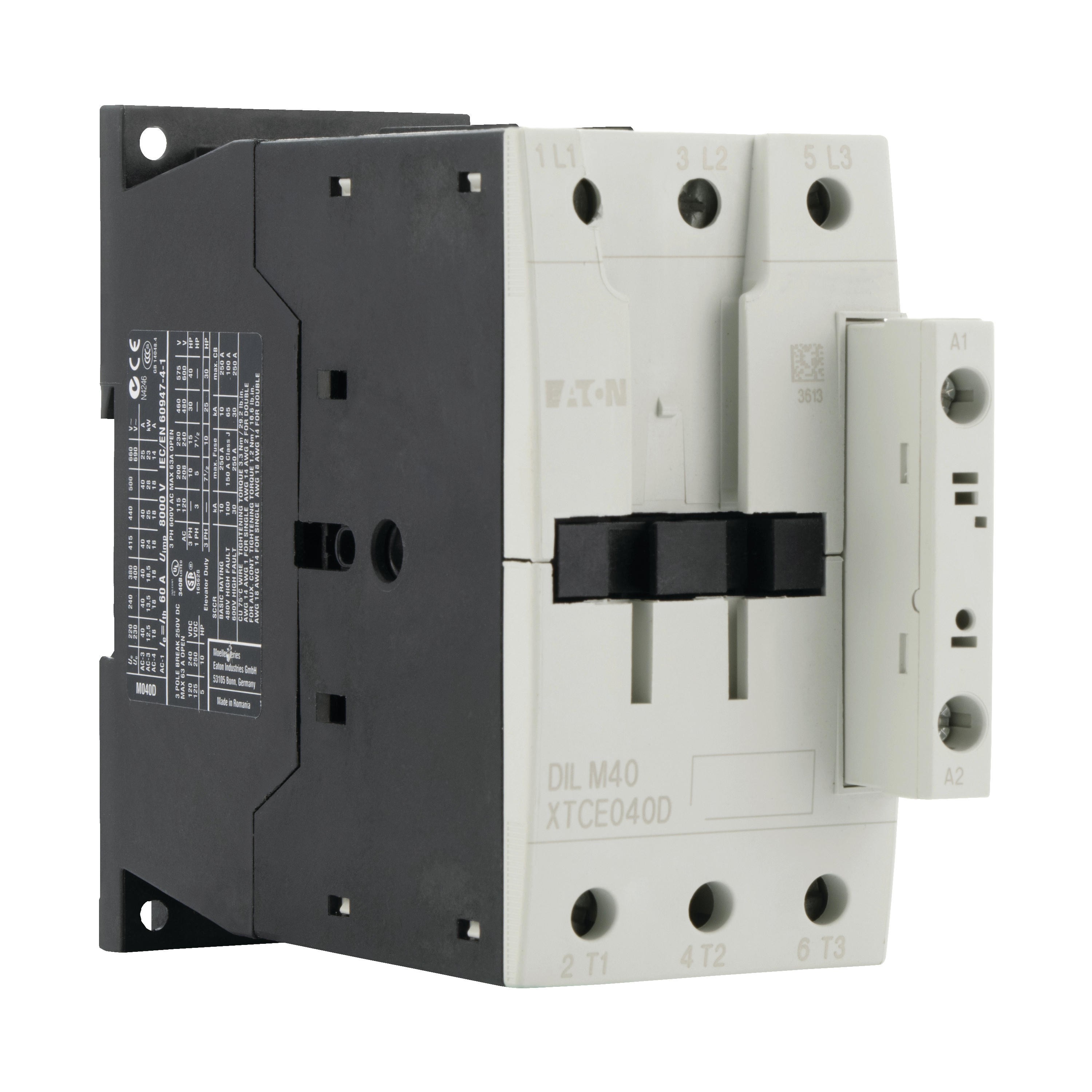 Stycznik, Zastosowanie: Styczniki do silników, Styczniki do 170 A, 3-biegunowy, Kategoria użytkowa: AC-1: Obciążenia nieindukcyjne lub obciążenia o małej indukcyjności, piece oporowe, NAC-3: Standardowe silniki indukcyjne AC: rozruch, wyłączanie w trakcie pracy, AC-4: Stand. silniki indukcyjne AC: rozruch, podłączanie, cofanie, praca spowolnion, Sposób podłączenia: Zaciski śrubowe, Uwagi: Odpowiednie również dla silników o klasie sprawności IE3., Urządzenia spełniające normy IE3 są oznaczone odpowiednim logo na opakowaniu., Liczba biegunów: 3-biegunowy, Znamionowy prąd roboczy AC-3, 380 V 400 V: Ie= 40 A, Znamionowy prąd roboczy AC-1 Prąd cieplny umowny na wolnym powietrzu, 3-biegunowy