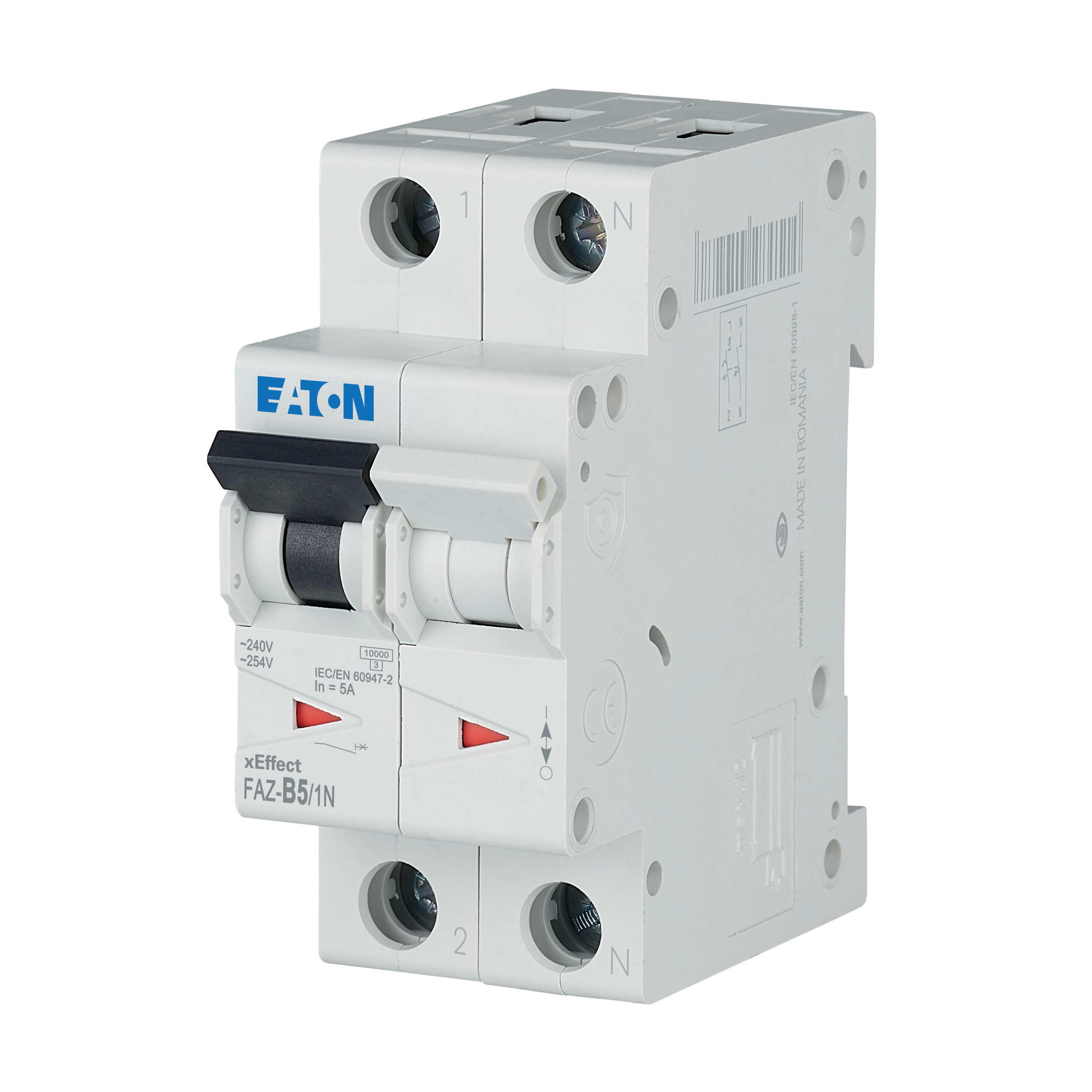 Installatieautomaat (MCB), FAZ, 1-polig + N, afschakelkarakteristiek: B, nominale stroom In: 5 A, nominaal schakelvermogen (IEC/EN 60947-2): 15 kA, Schakelapparatuur industriële en geavanceerde commerciële toepassingen