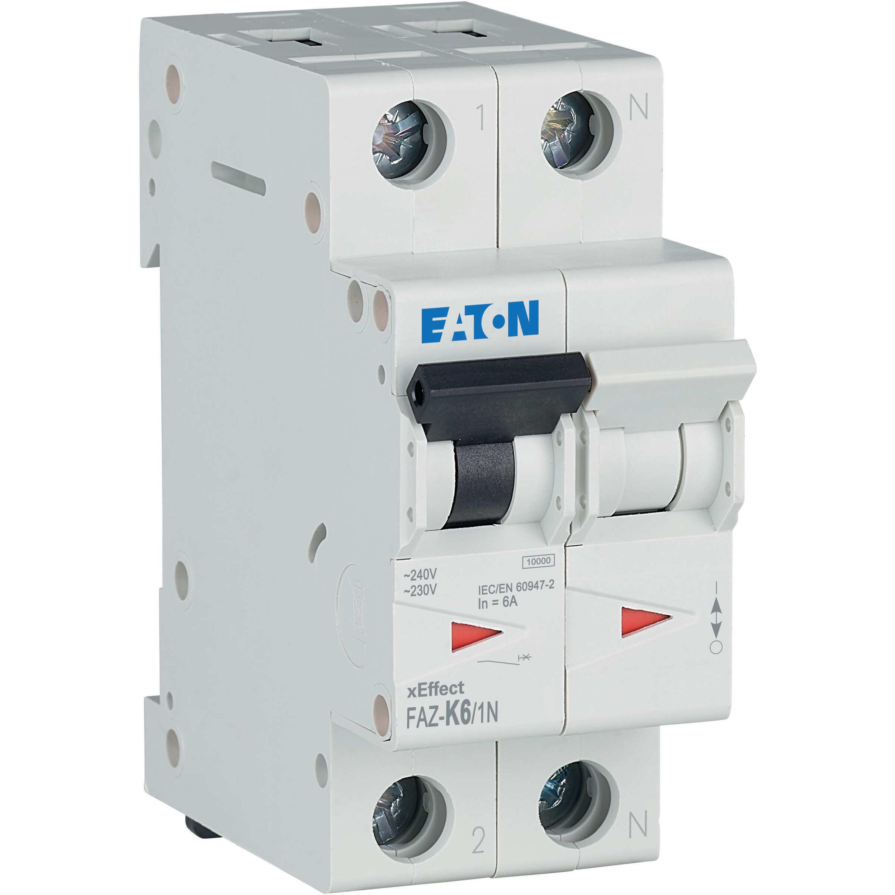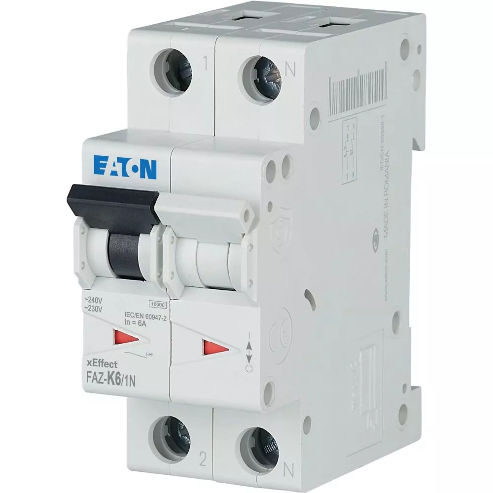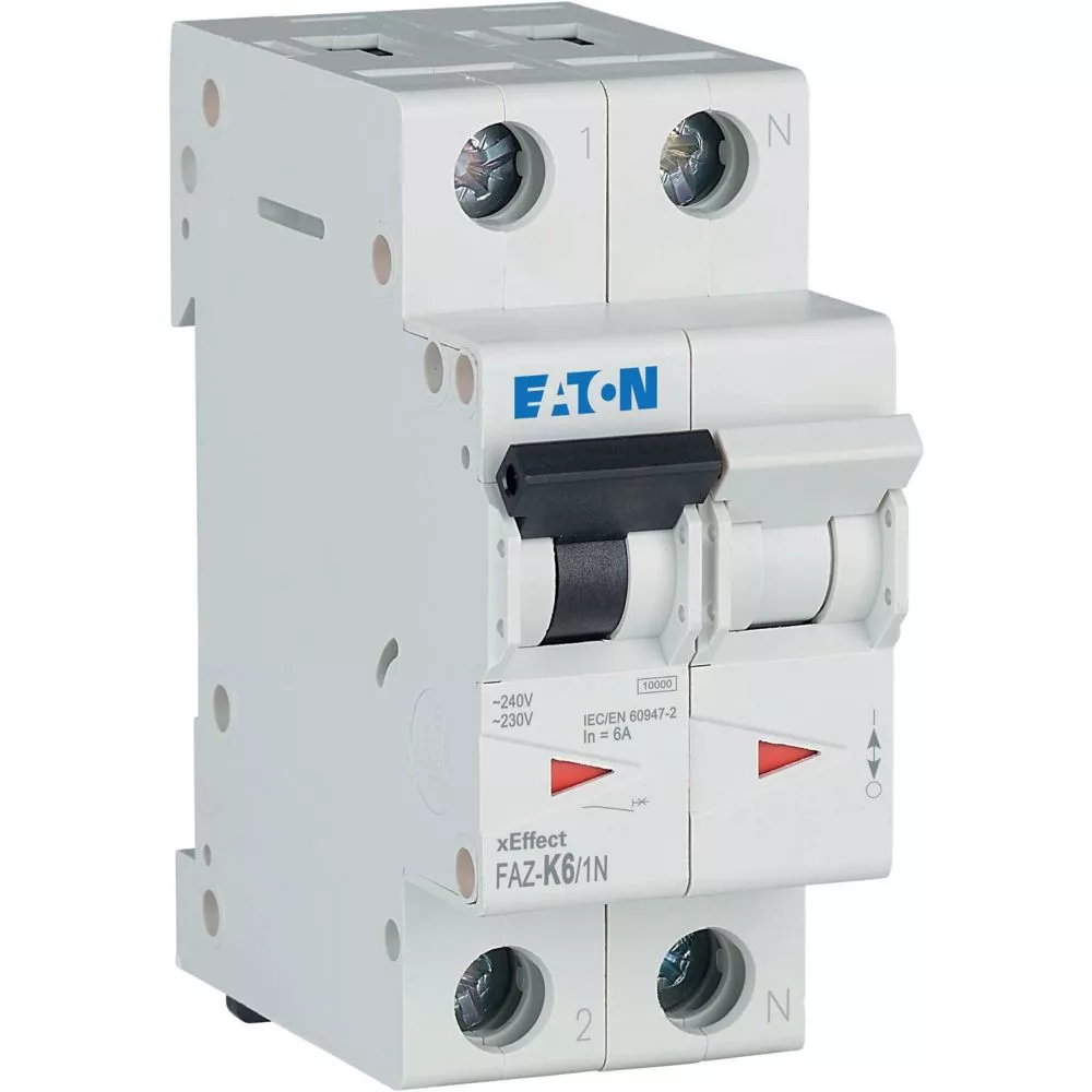 Installatieautomaat (MCB), FAZ, 1-polig + N, afschakelkarakteristiek: K, nominale stroom In: 6 A, nominaal schakelvermogen (IEC/EN 60947-2): 15 kA, Schakelapparatuur industriële en geavanceerde commerciële toepassingen
