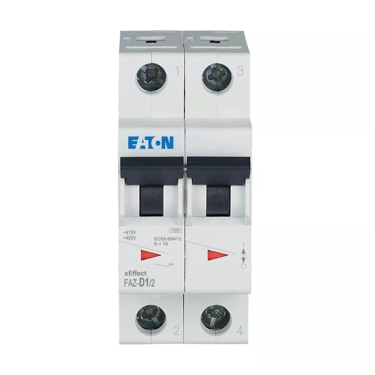 Installatieautomaat (MCB), FAZ, 2-polig, afschakelkarakteristiek: D, nominale stroom In: 1 A, Schakelapparatuur industriële en geavanceerde commerciële toepassingen