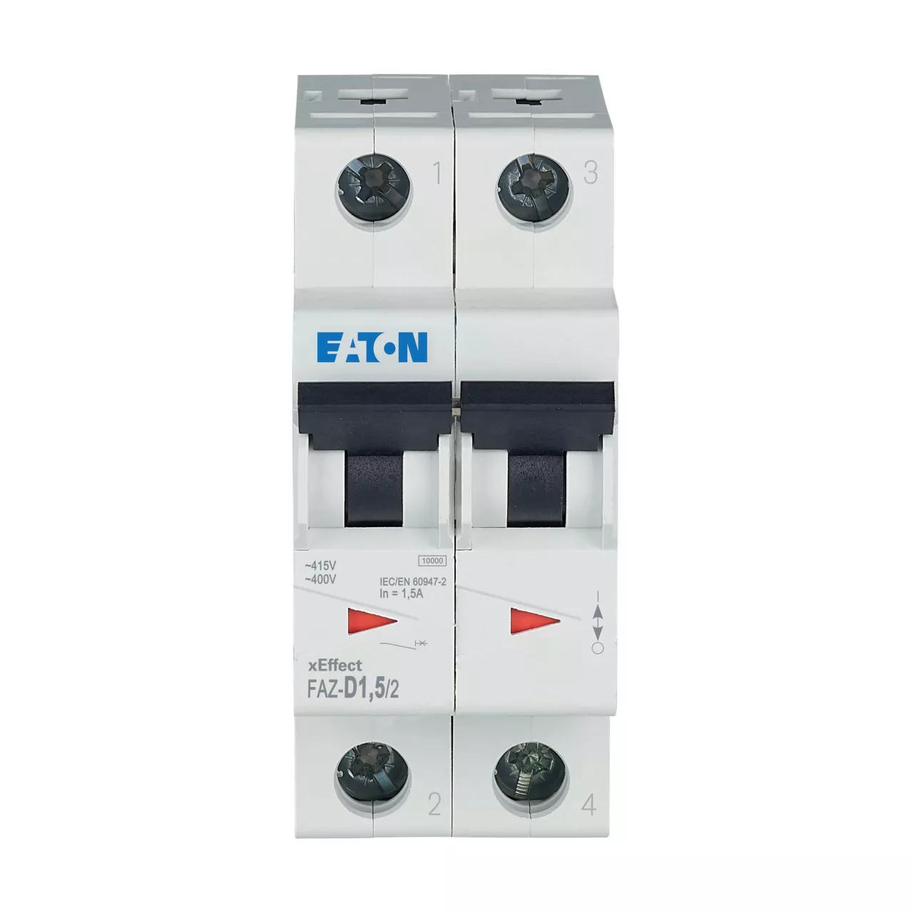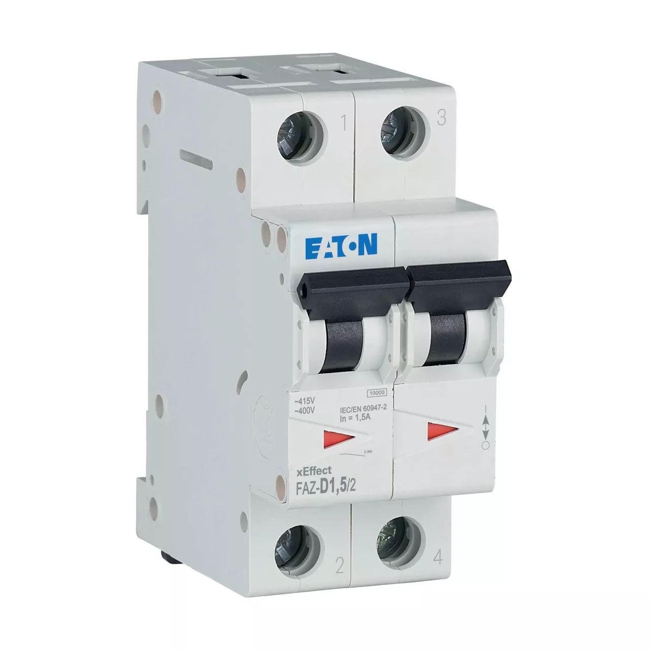 Installatieautomaat (MCB), FAZ, 2-polig, afschakelkarakteristiek: D, nominale stroom In: 1,5 A, Schakelapparatuur industriële en geavanceerde commerciële toepassingen