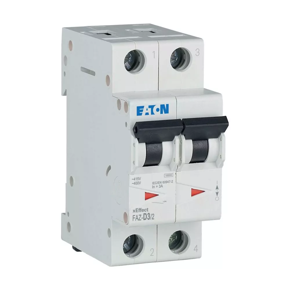 Installatieautomaat (MCB), FAZ, 2-polig, afschakelkarakteristiek: D, nominale stroom In: 3 A, Schakelapparatuur industriële en geavanceerde commerciële toepassingen