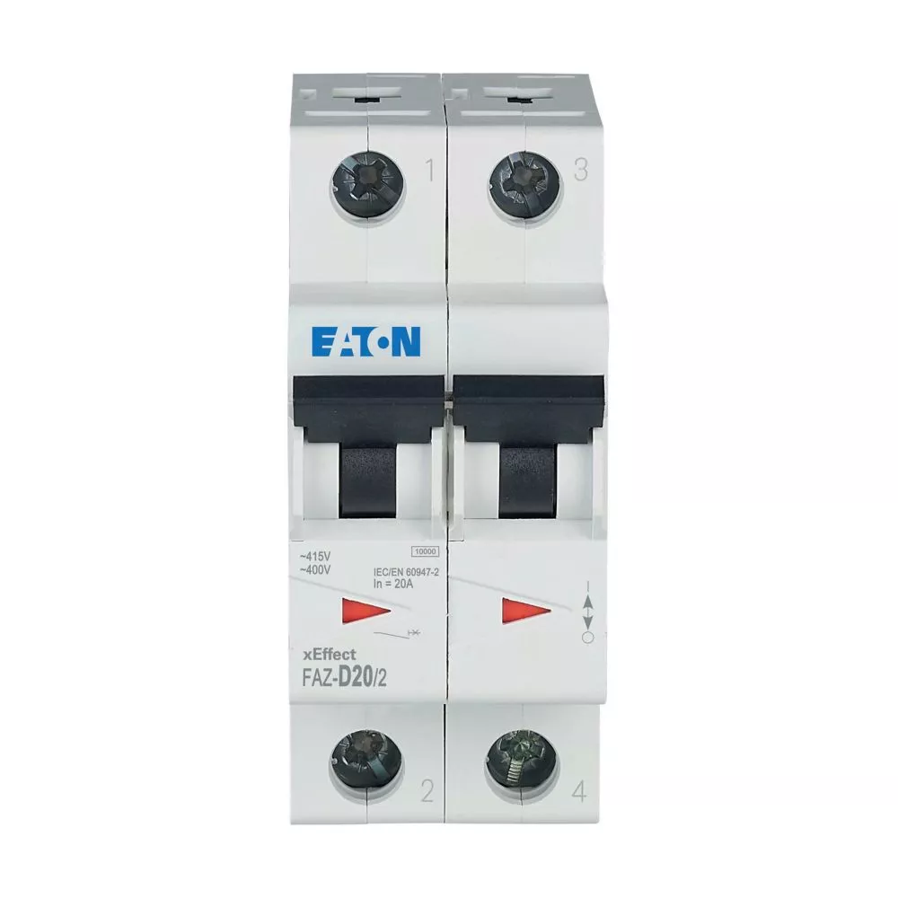 Installatieautomaat (MCB), FAZ, 2-polig, afschakelkarakteristiek: D, nominale stroom In: 20 A, Schakelapparatuur industriële en geavanceerde commerciële toepassingen