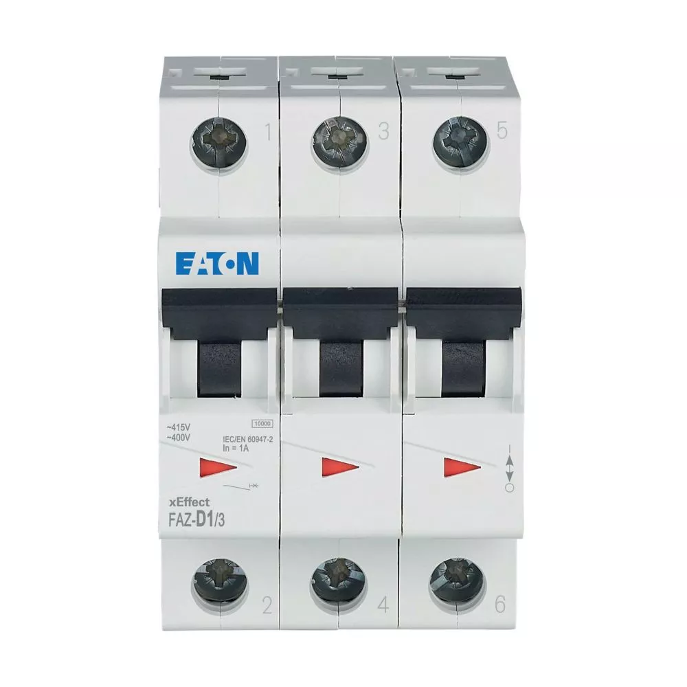 Installatieautomaat (MCB), FAZ, 3-polig, afschakelkarakteristiek: D, nominale stroom In: 1 A, Schakelapparatuur industriële en geavanceerde commerciële toepassingen