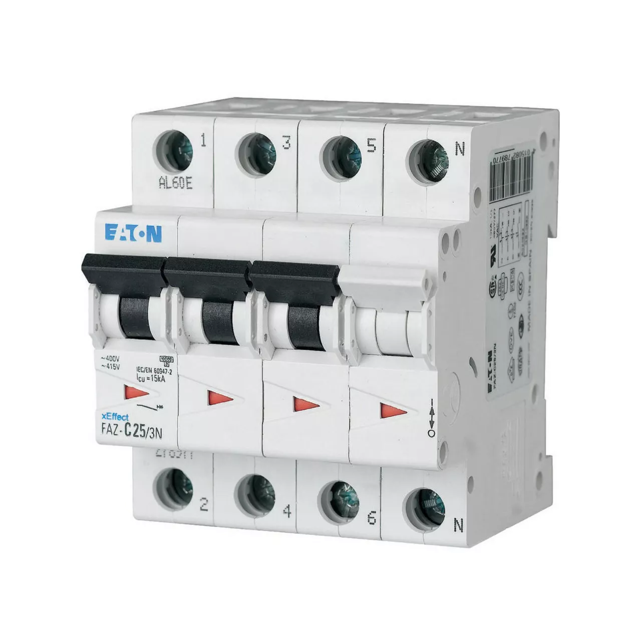 Installatieautomaat (MCB), FAZ, 3-polig+N, afschakelkarakteristiek: B, nominale stroom In: 2,5 A, nominaal schakelvermogen (IEC/EN 60947-2): 15 kA, Schakelapparatuur industriële en geavanceerde commerciële toepassingen