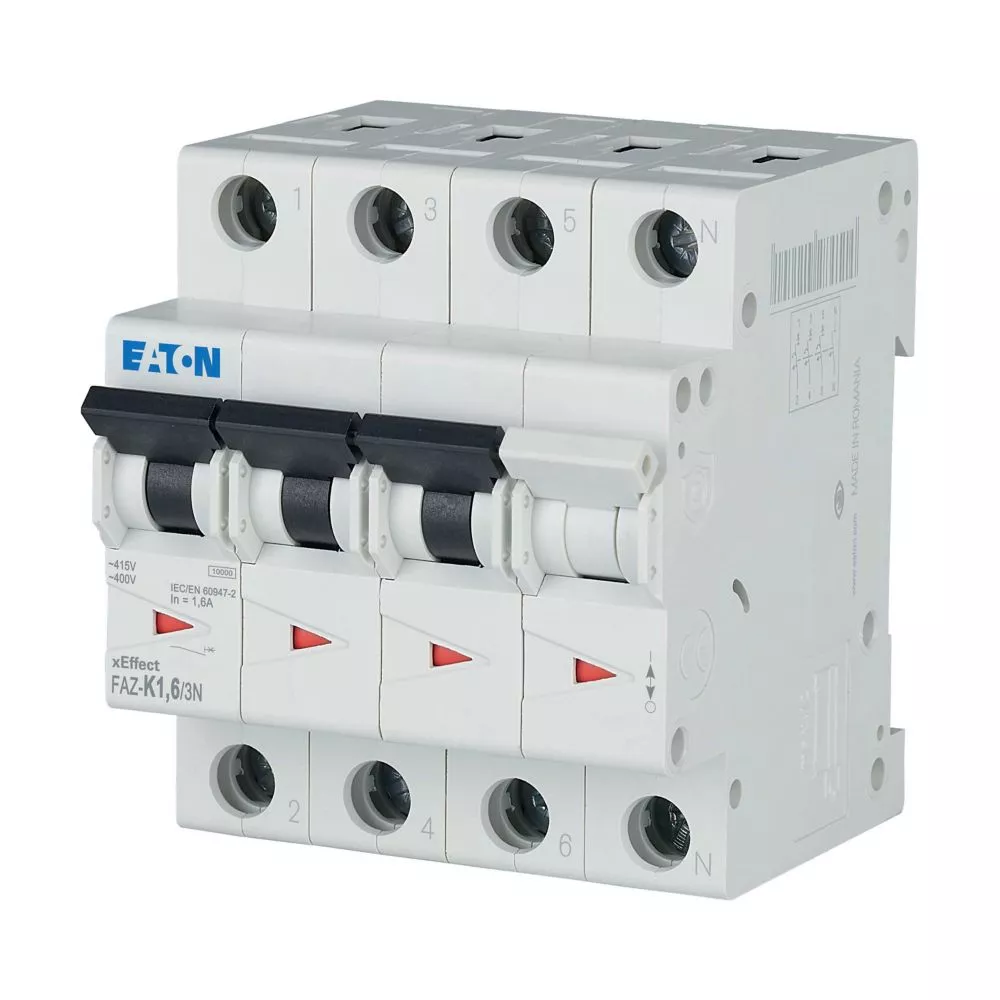Installatieautomaat (MCB), FAZ, 3-polig+N, afschakelkarakteristiek: K, nominale stroom In: 1,6 A, Schakelapparatuur industriële en geavanceerde commerciële toepassingen