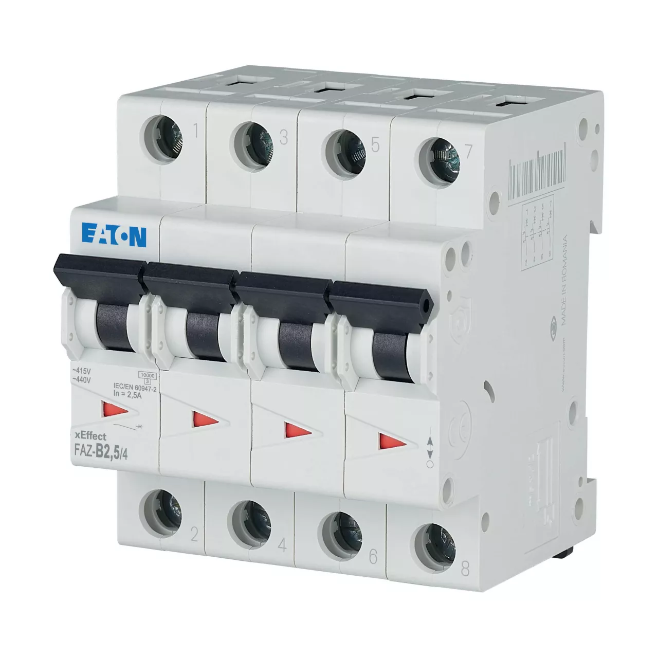 Mini-vermogensschakelaar (MCB), FAZ, 4-polig, uitschakelkarakteristiek: B, nominale stroom In: 2,5 A, Schakelapparatuur industriële en geavanceerde commerciële toepassingen
