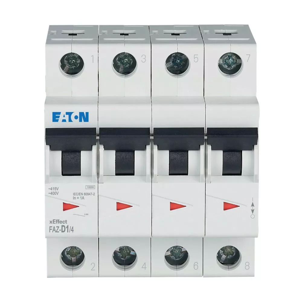 Mini-vermogensschakelaar (MCB), FAZ, 4-polig, uitschakelkarakteristiek: D, nominale stroom In: 1 A, Schakelapparatuur industriële en geavanceerde commerciële toepassingen
