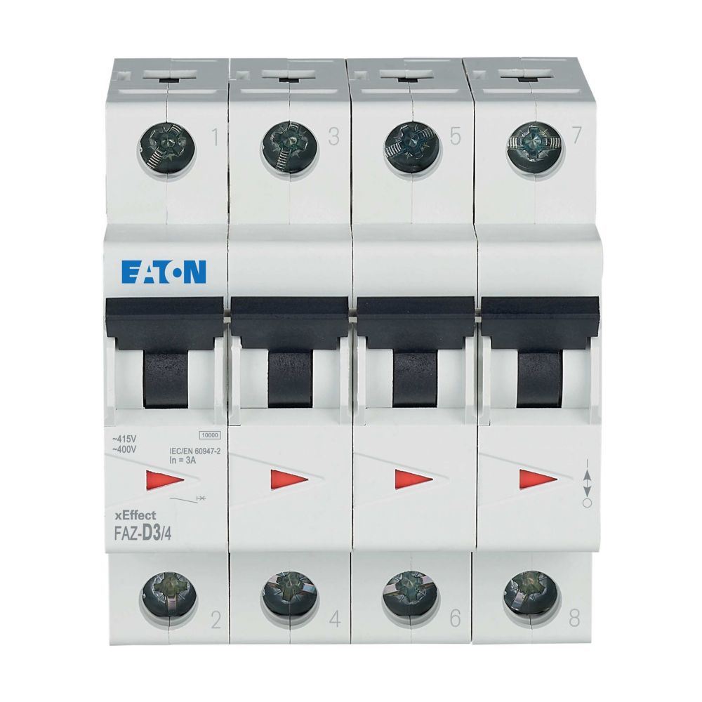Mini-vermogensschakelaar (MCB), FAZ, 4-polig, uitschakelkarakteristiek: D, nominale stroom In: 3 A, Schakelapparatuur industriële en geavanceerde commerciële toepassingen