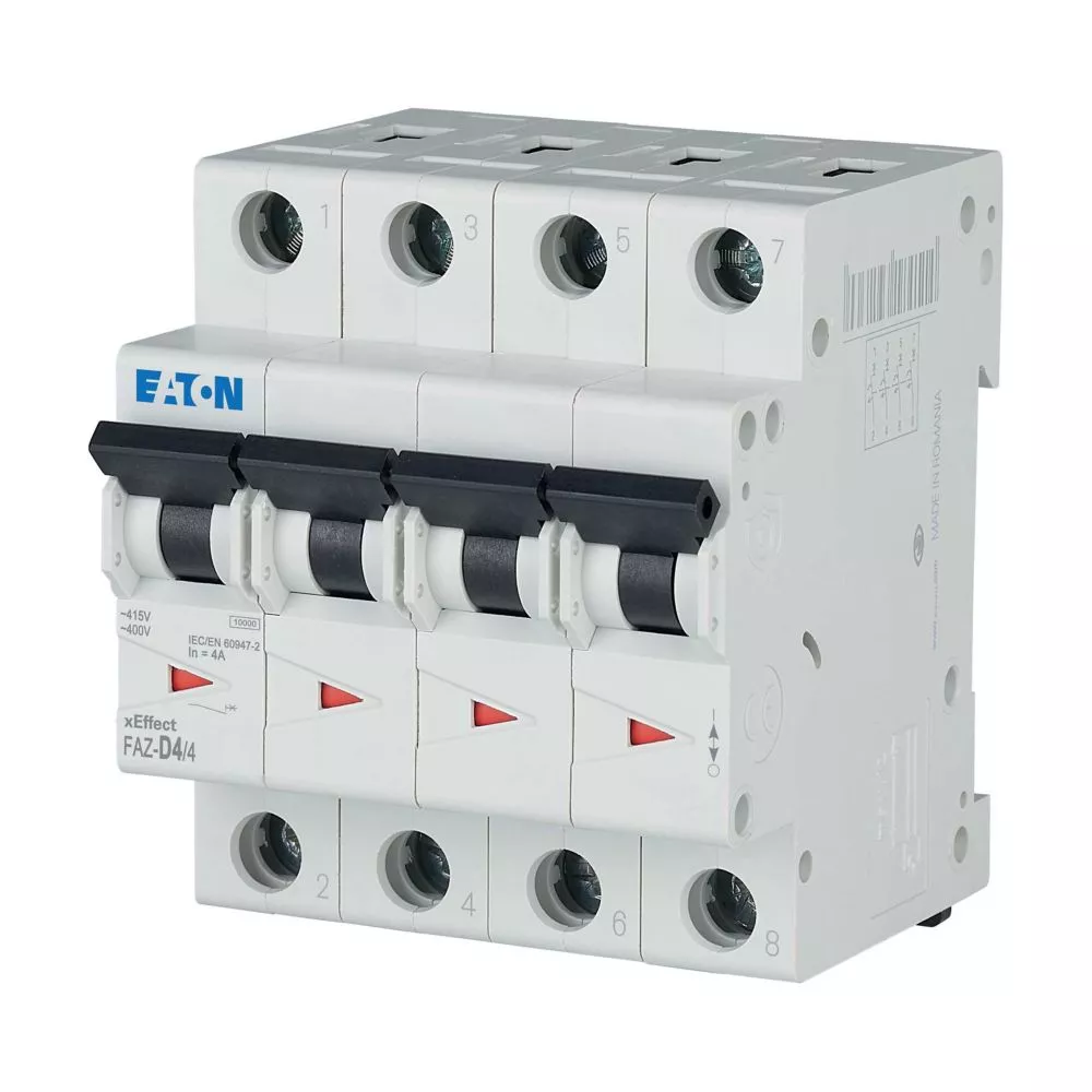 Mini-vermogensschakelaar (MCB), FAZ, 4-polig, uitschakelkarakteristiek: D, nominale stroom In: 4 A, Schakelapparatuur industriële en geavanceerde commerciële toepassingen