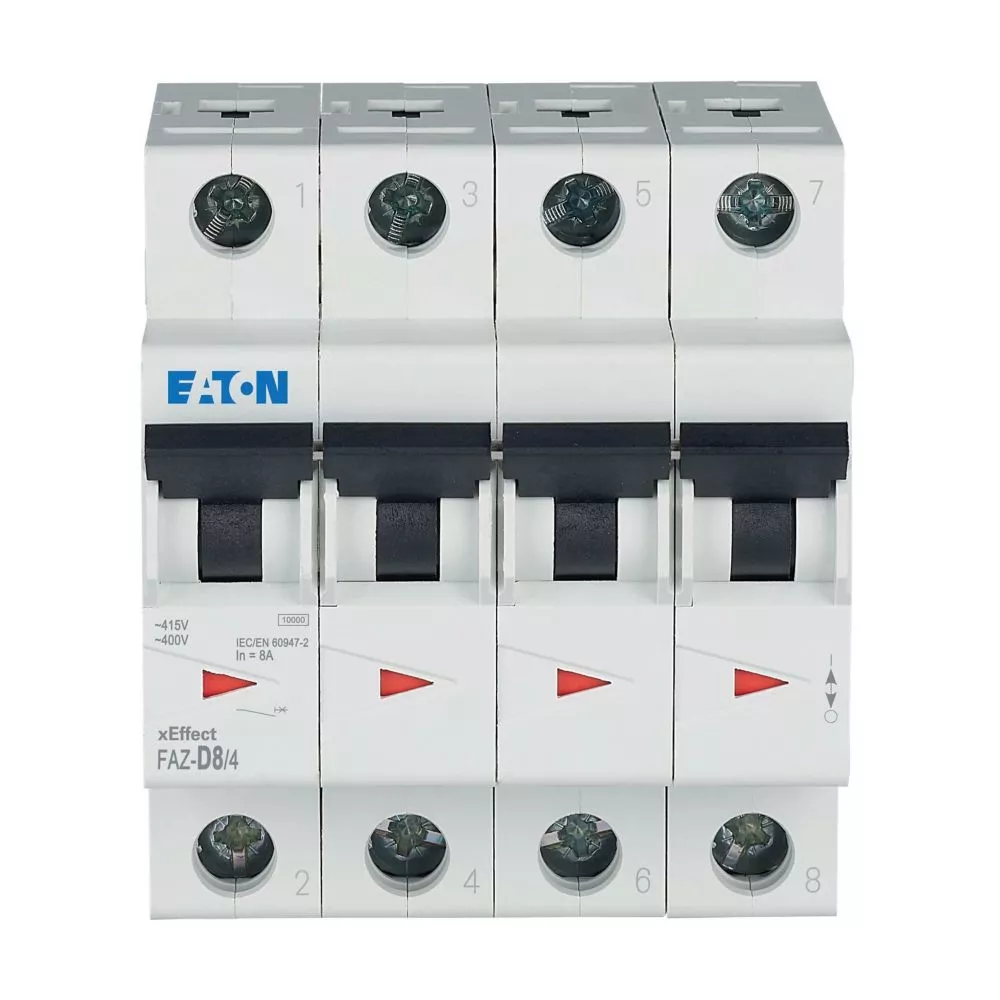 Mini-vermogensschakelaar (MCB), FAZ, 4-polig, uitschakelkarakteristiek: D, nominale stroom In: 8 A, Schakelapparatuur industriële en geavanceerde commerciële toepassingen