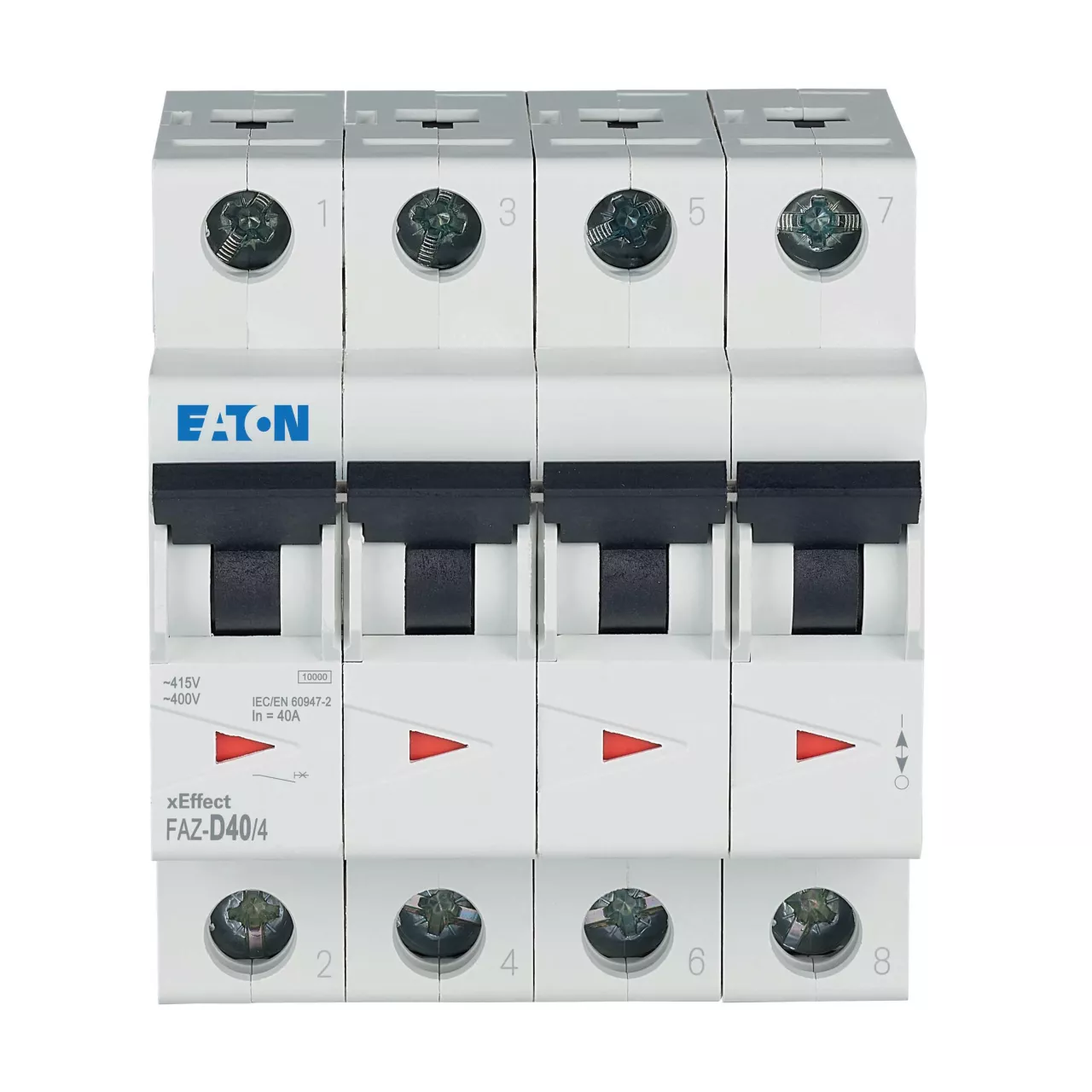 Mini-vermogensschakelaar (MCB), FAZ, 4-polig, uitschakelkarakteristiek: D, nominale stroom In: 40 A, Schakelapparatuur industriële en geavanceerde commerciële toepassingen