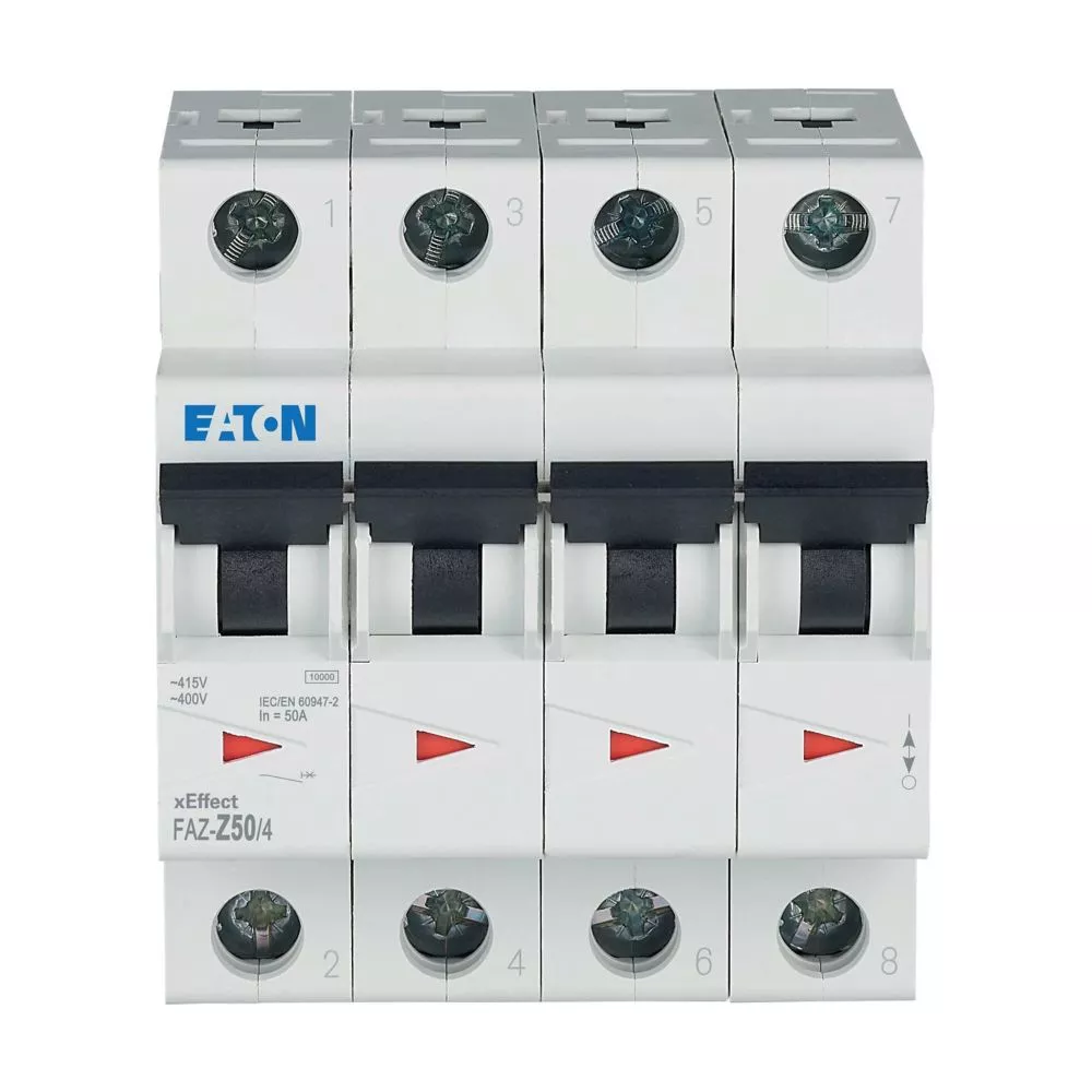 Mini-vermogensschakelaar (MCB), FAZ, 4-polig, uitschakelkarakteristiek: Z, nominale stroom In: 50 A, Schakelapparatuur industriële en geavanceerde commerciële toepassingen