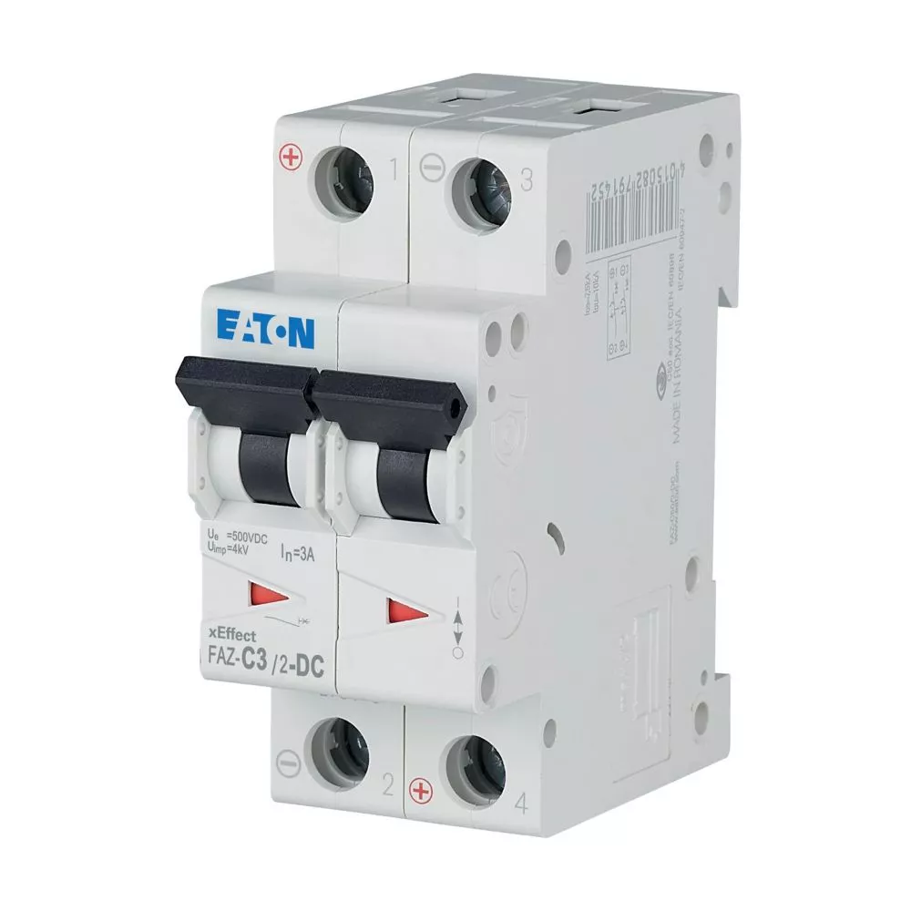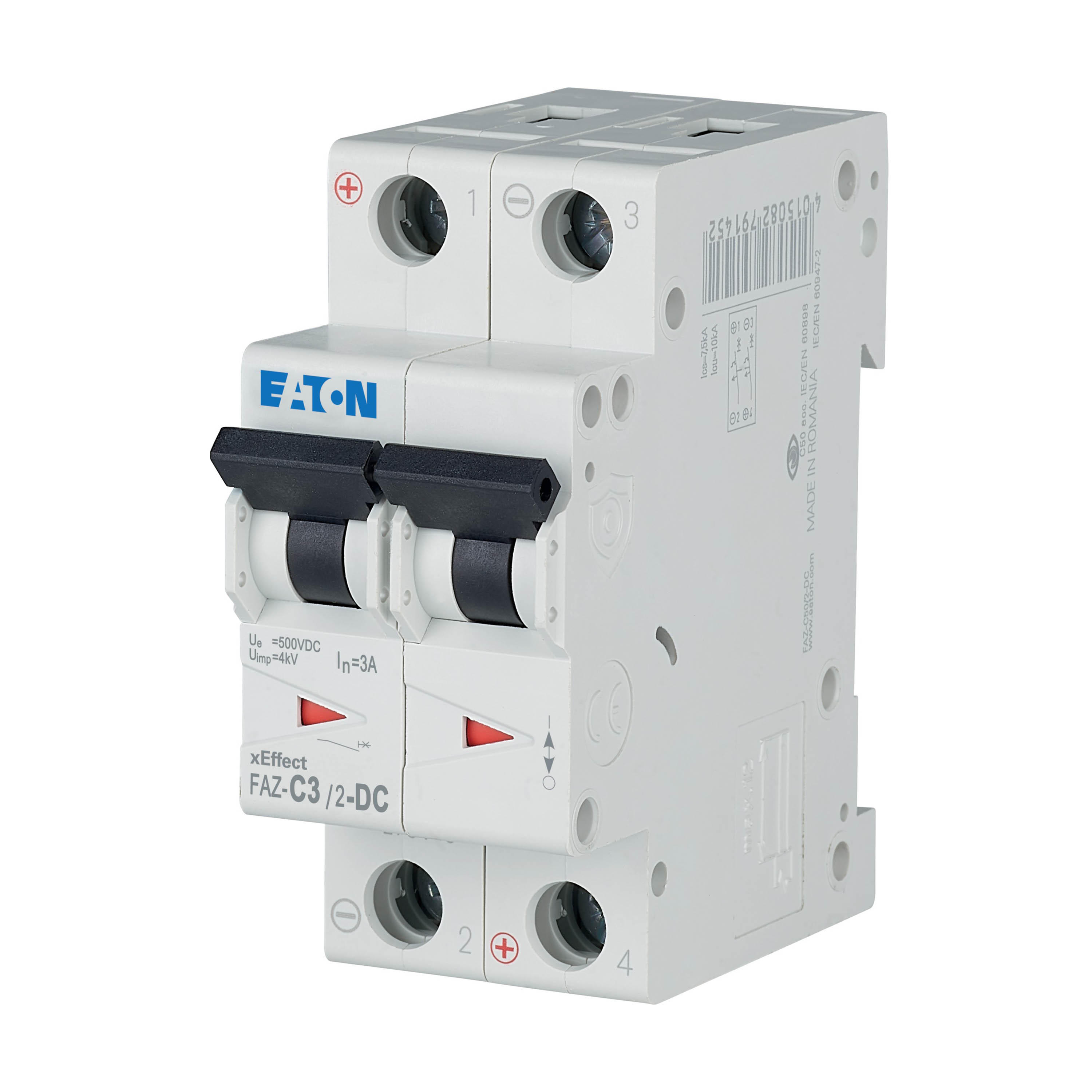 Installatieautomaat (MCB), FAZ-DC, 2-polig, afschakelkarakteristiek: C, nominale stroom In: 3 A, Schakelapparatuur voor gelijkstroomtoepassingen