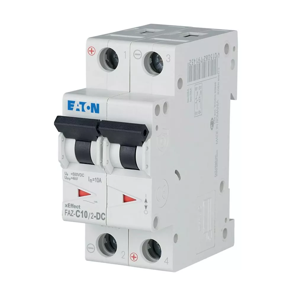 Installatieautomaat (MCB), FAZ-DC, 2-polig, afschakelkarakteristiek: C, nominale stroom In: 10 A, Schakelapparatuur voor gelijkstroomtoepassingen