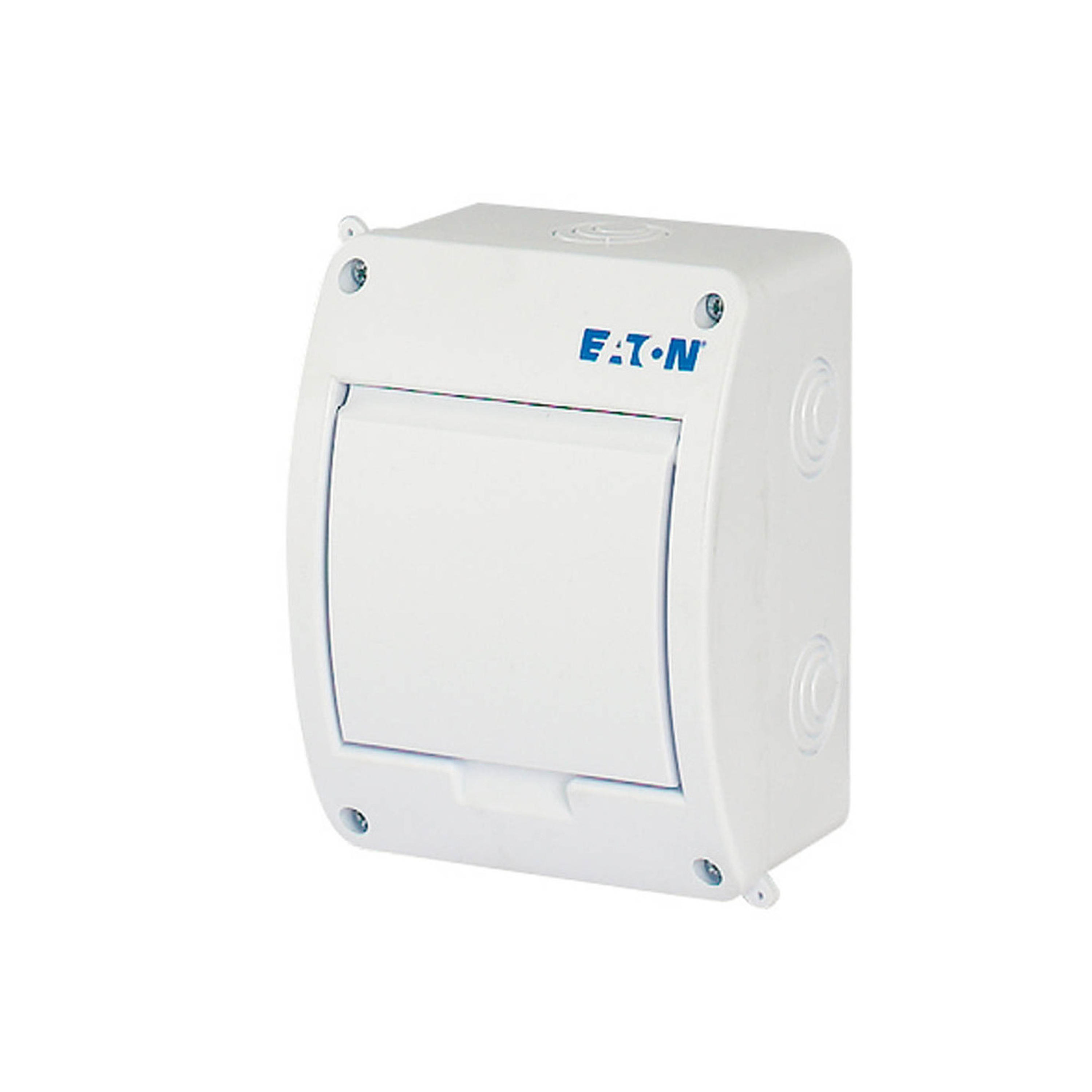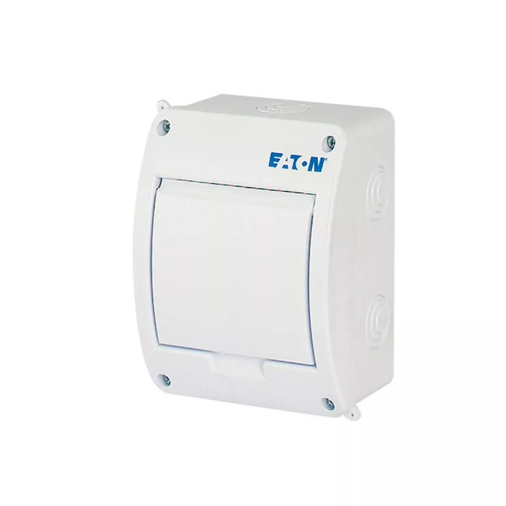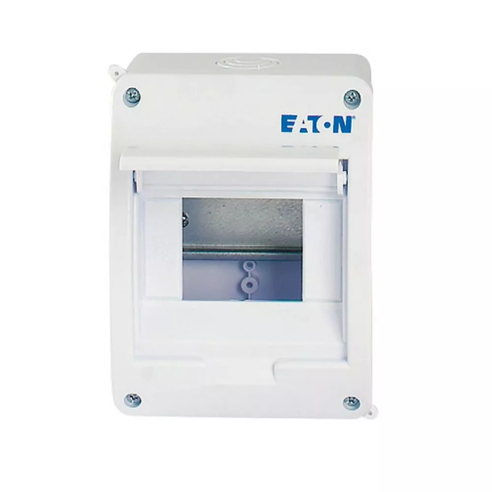 ECO compacte verdeler, opbouw, wit RAL9003, IP40 beschermingsgraad volgens IEC/EN 62208, 5 module-units, 1-rij, beschermingsklasse 2, volledig geïsoleerd, goedgekeurd voor installatieverdeler voor gebouwen conform IEC/EN 61439-3 VDE 0660-600-3, behuizing volledig gemaakt van ABS, voor het installeren van schakel- en beveiligingscomponenten, in overeenstemming met afmetingenstandaard DIN 43 880, met een installatiediepte van 70 mm, AC 400 V, RoHS-conform, bestaande uit een kunststof basis met een DIN-rail van verzinkt plaatstaal, vingeraanrakingsveilige IP2X nulgeleider- en aardklemmen