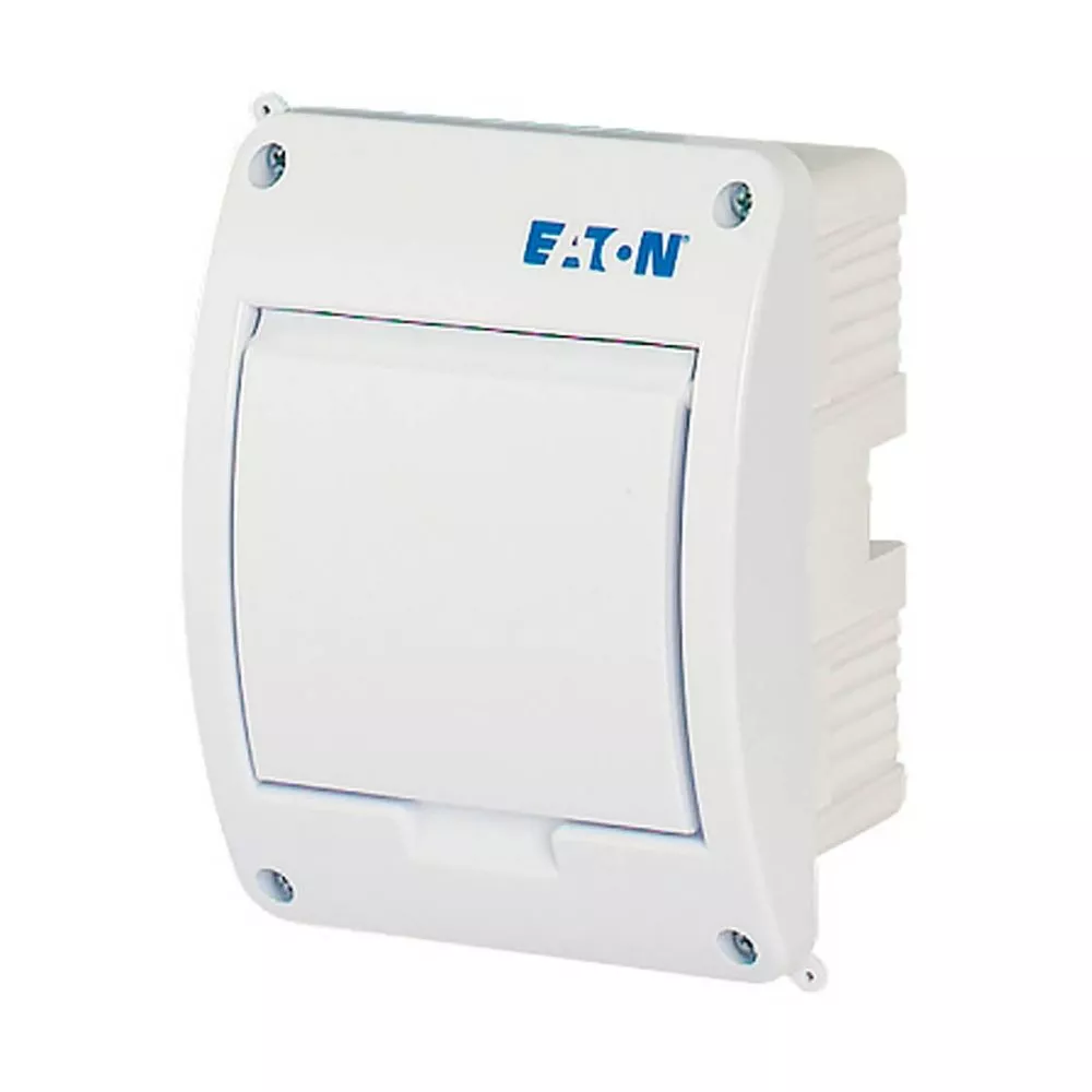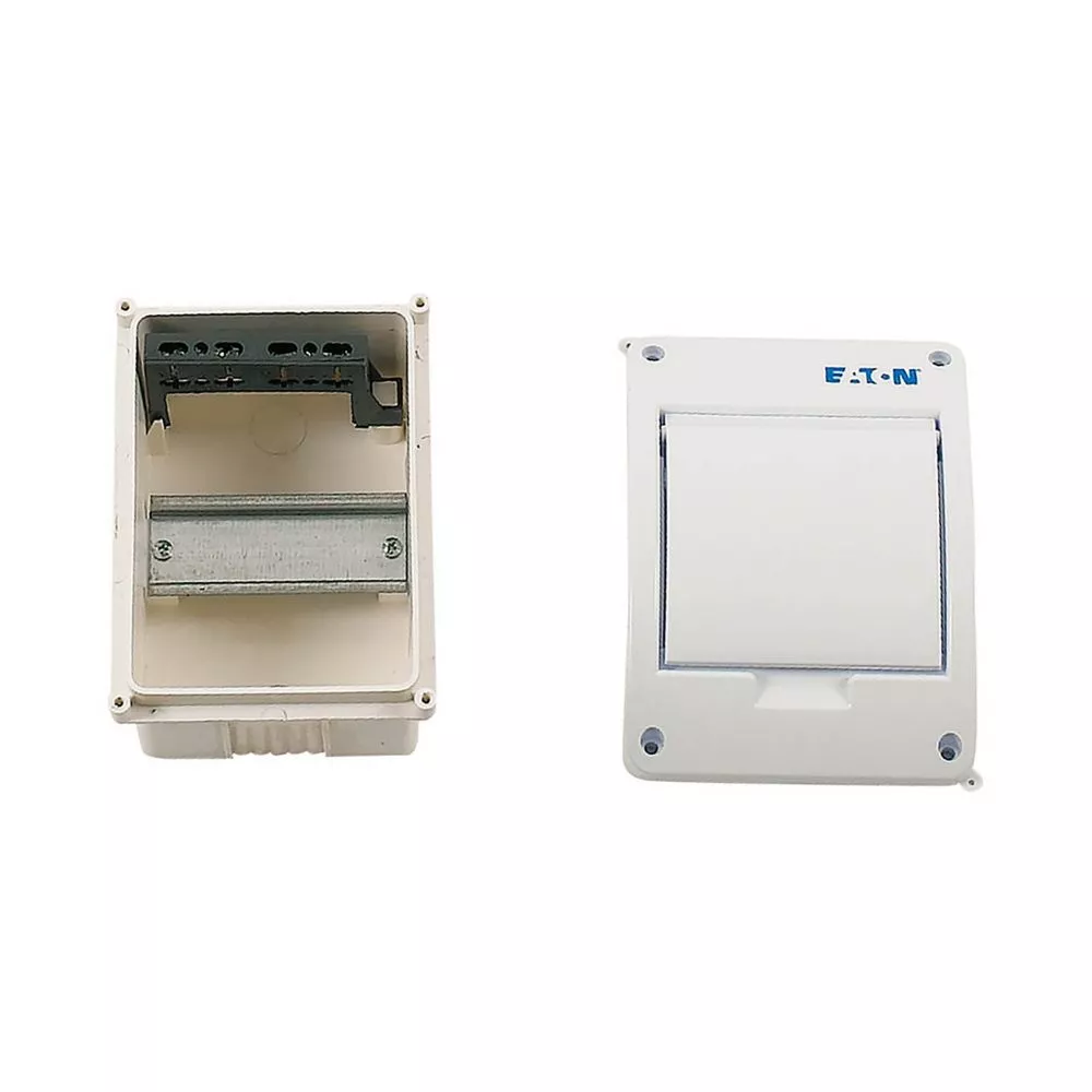 ECO compacte verdeler, inbouw, wit RAL9003, IP40 beschermingsgraad volgens IEC/EN 62208, 5 module-units, 1-rij, beschermingsklasse 2, volledig geïsoleerd, goedgekeurd voor installatieverdeler voor gebouwen conform IEC/EN 61439-3 VDE 0660-600-3, behuizing volledig gemaakt van ABS, voor het installeren van schakel- en beveiligingscomponenten, in overeenstemming met afmetingenstandaard DIN 43 880, met een installatiediepte van 70 mm, AC 400 V, RoHS-conform, bestaande uit een kunststof basis met een DIN-rail van verzinkt plaatstaal, vingeraanrakingsveilige IP2X nulgeleider- en aardklemmen