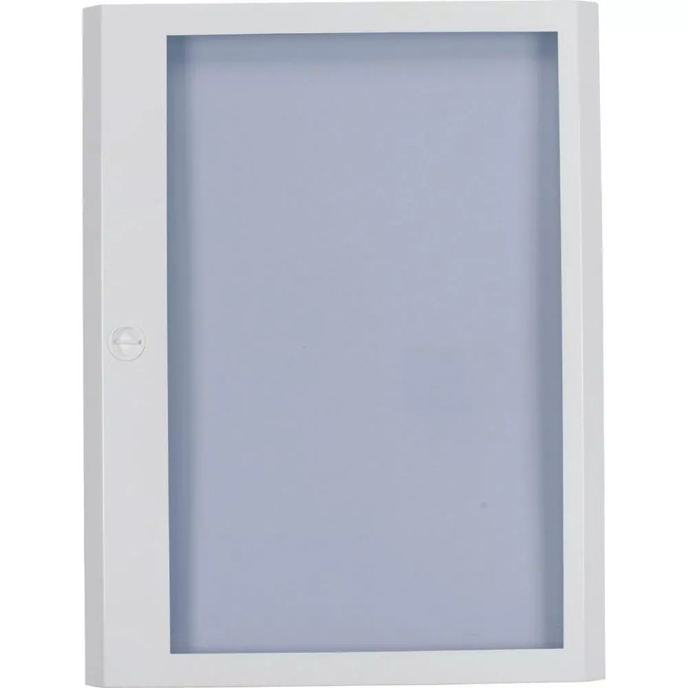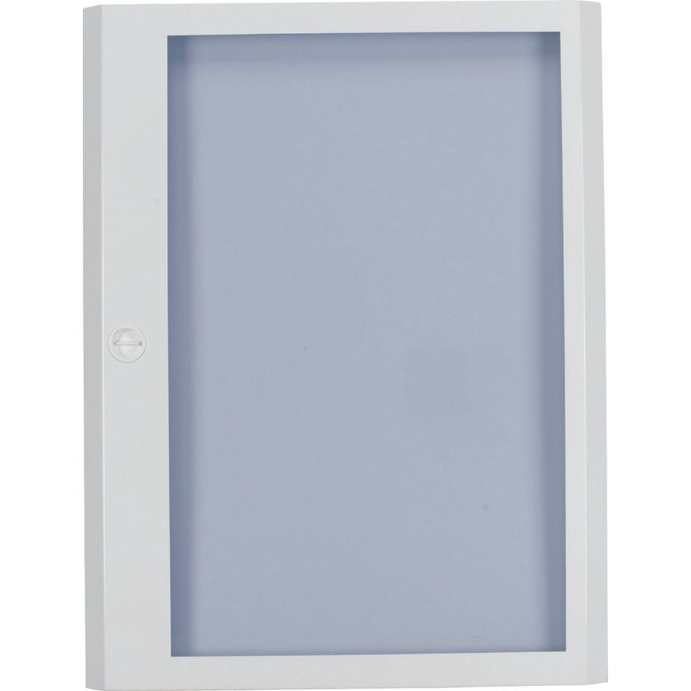 Stahlblechtür mit Sichtfenster für Aufputzgehäuse, pulverbeschichtet mit Polyester, weiß RAL 9016, 24 Platzeinheiten pro Reihe, 3-reihig