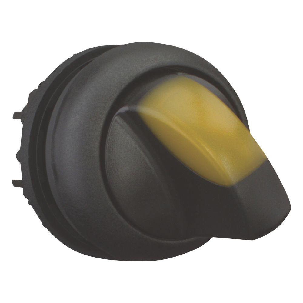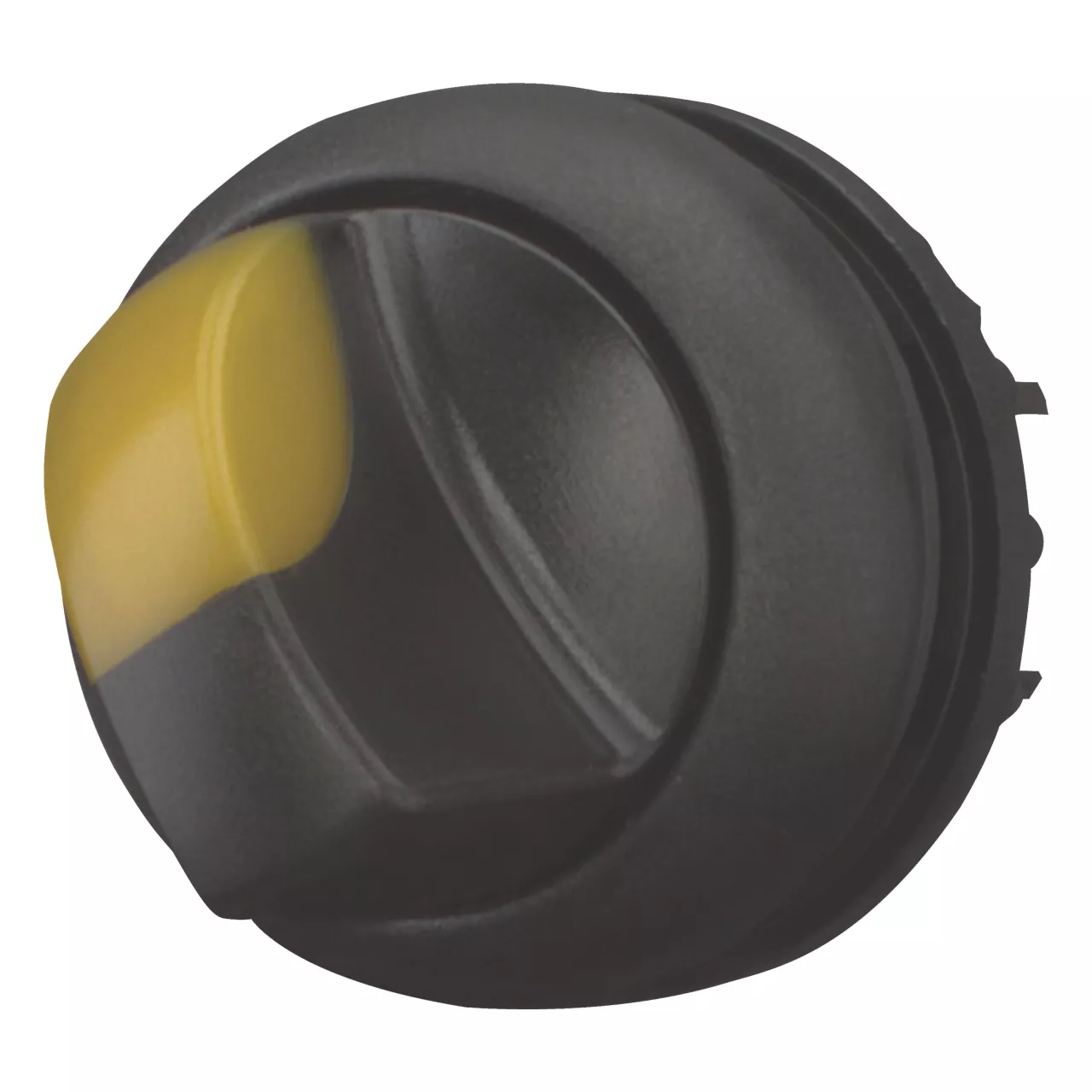 Przełącznik podświetlany, Zacisk śrubowy: RMQ-Titan, Urządzenie pojedyncze, Projekt: Z pokrętłem, bez samopowrotu, 2 położenia (położenie V), Kolor uchwytu na kciuk: żółty, Stopień ochrony: IP66, Pierścień czołowy: czarny, Podłączanie do SmartWire-DT: tak, z przyłączami SWD-RMQ, Wymiary przedniej części: 29,7, Instrukcje: Funkcja zatrzymania / powracania przycisku, może zostać zmieniony za pomocą elementów kodujących M22-XC-Y, Normy: IEC/EN 60947, VDE 0660, Stopień ochrony: IP66