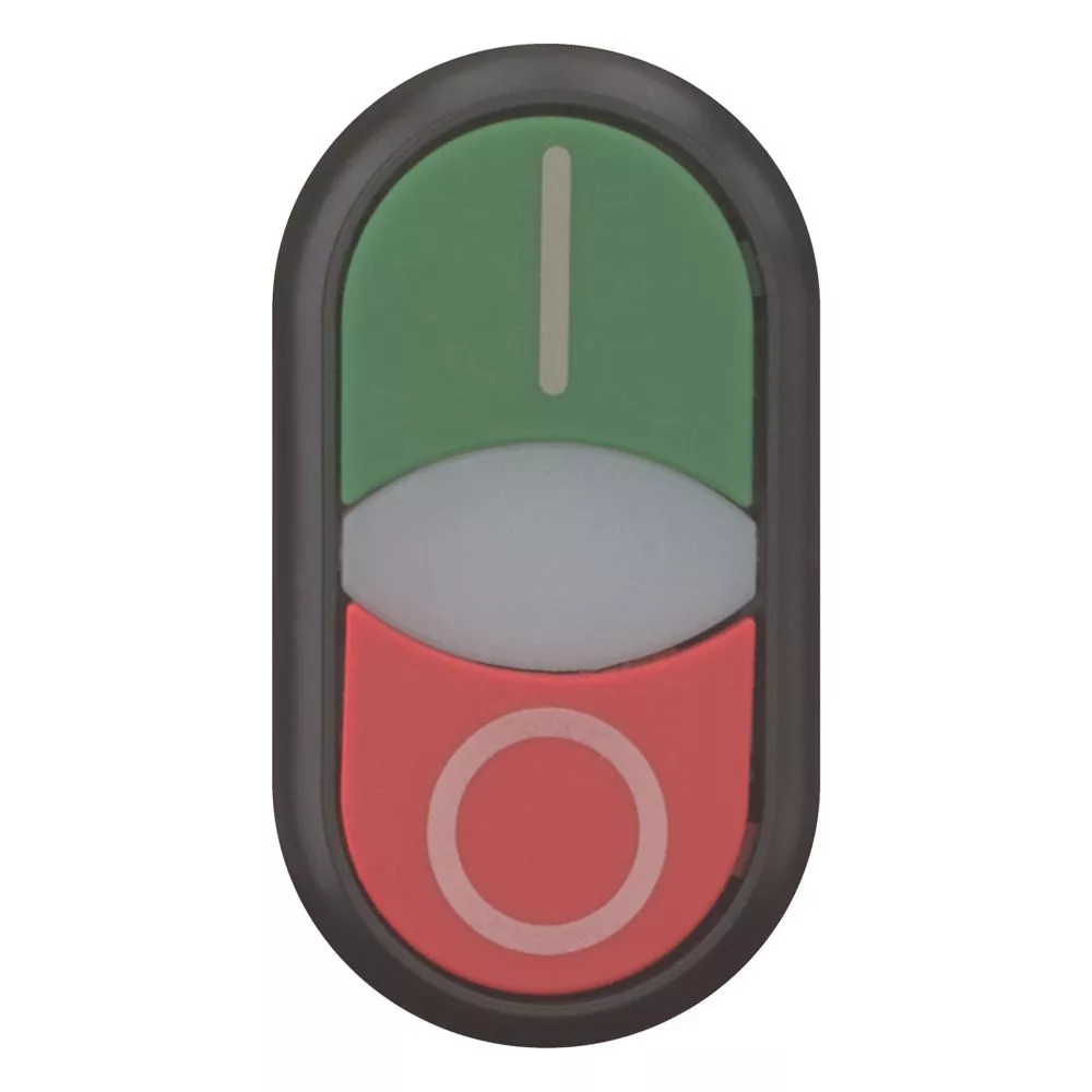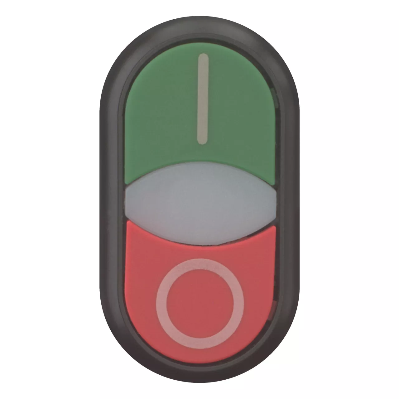 Przycisk podwójny, Zacisk śrubowy: RMQ-Titan, Urządzenie pojedyncze, Projekt: Elementy uruchamiające i lampki sygnalizacyjne zlicowane, z samopowrotem, Opis: Biała soczewka, wkładka przycisku: zielony, czerwony, Wkładka przycisku podpisana, Stopień ochrony: IP66, Pierścień czołowy: czarny, Podłączanie do SmartWire-DT: tak, z przyłączami SWD-RMQ, Wymiary przedniej części: 29,7 x 54,7, Normy: IEC/EN 60947, VDE 0660