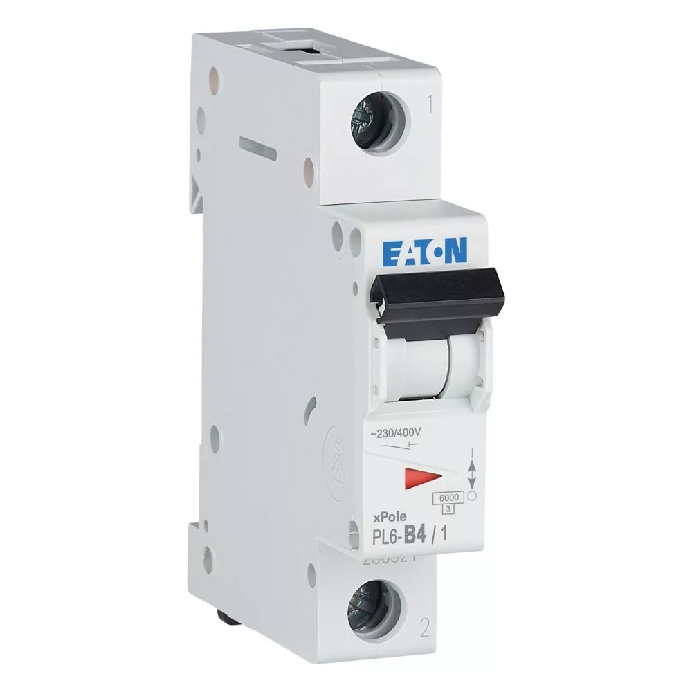 Leitungsschutzschalter (MCB), PL6, 1-polig, Auslösecharakteristik: B, Bemessungsstrom Ein: 4 A, Bemessungsschaltvermögen nach IEC/EN 60898-1: 6 kA, Schaltgeräte für den Wohnungsbereich und kommerzielle Anwendungen