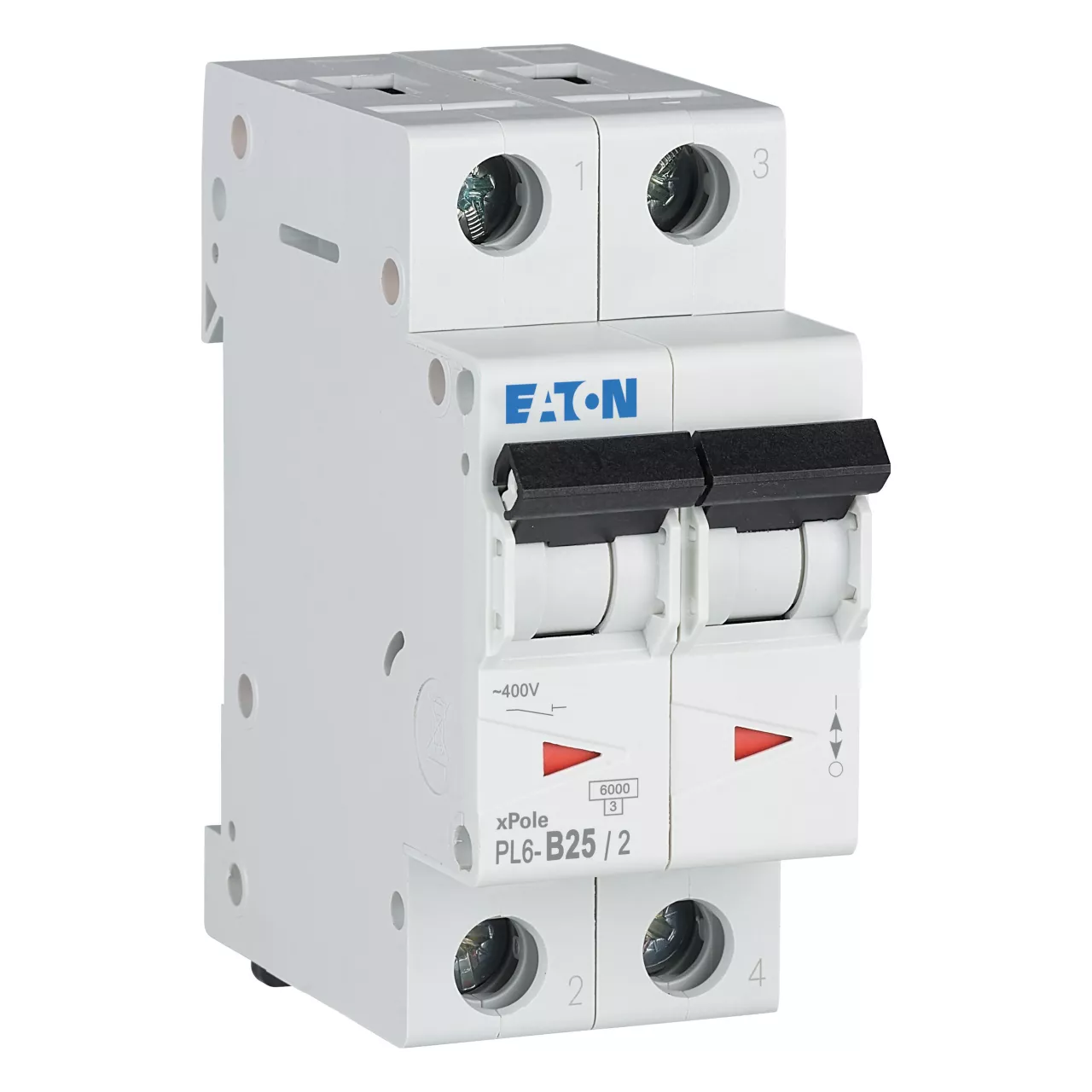 Leitungsschutzschalter (MCB), PL6, 2-polig, Auslösecharakteristik: B, Bemessungsstrom Ein: 25 A, Bemessungsschaltvermögen nach IEC/EN 60898-1: 6 kA, Schaltgeräte für den Wohnungsbereich und kommerzielle Anwendungen