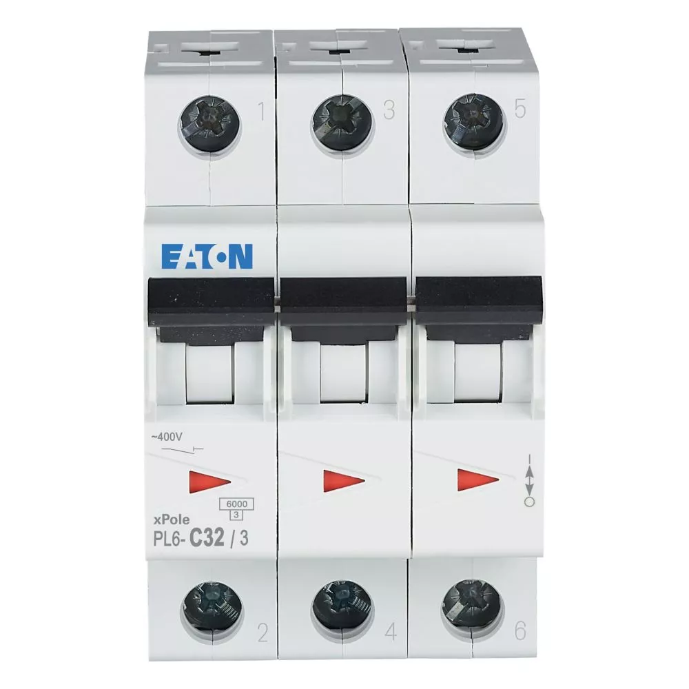 Leitungsschutzschalter (MCB), PL6, 3-polig, Auslösecharakteristik: C, Bemessungsstrom Ein: 32 A, Bemessungsschaltvermögen nach IEC/EN 60898-1: 6 kA, Schaltgeräte für den Wohnungsbereich und kommerzielle Anwendungen