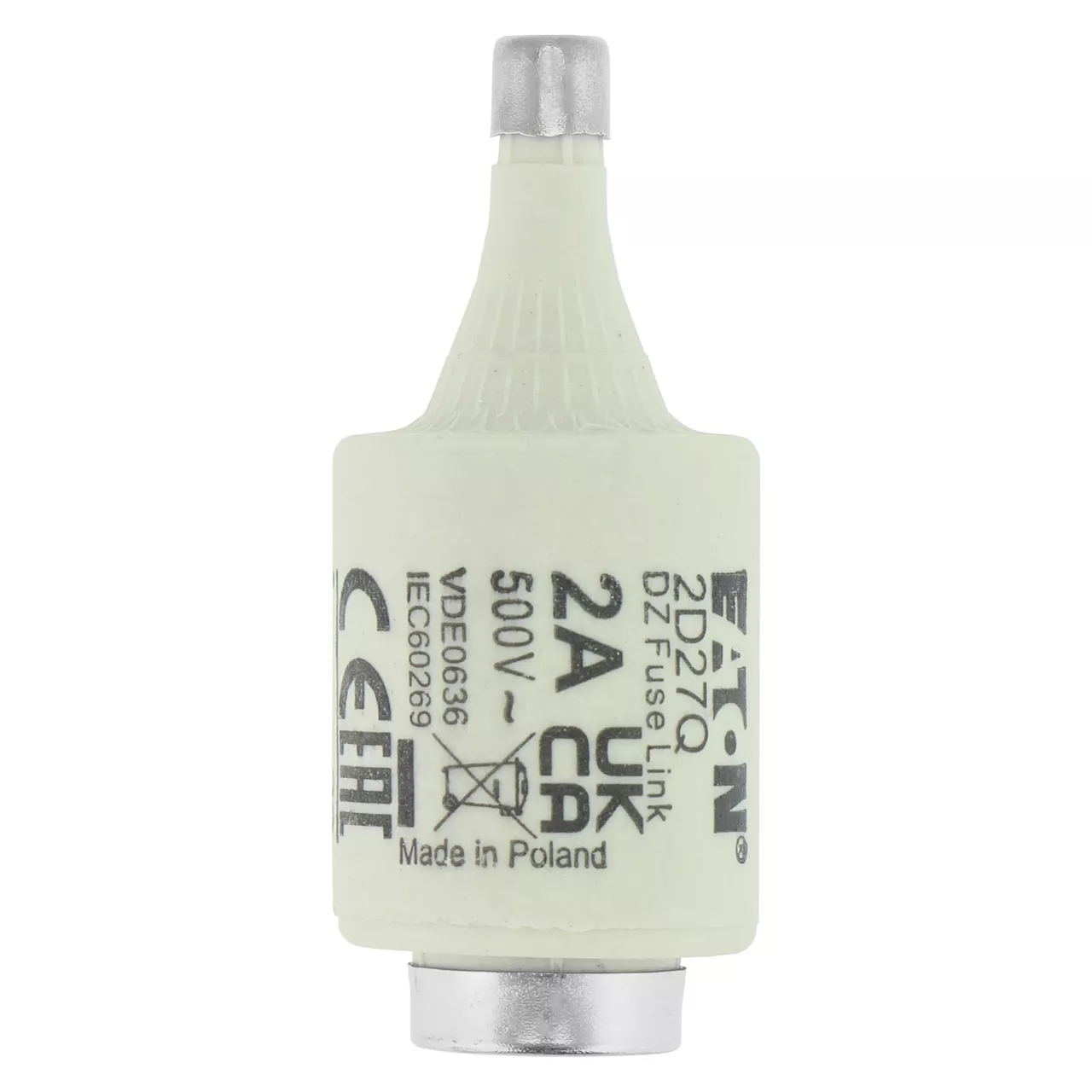 Zekering, zekeringelement, laagspanning, 2 A, AC 500 V, D2, gR, IEC, snel aansprekend, fles, E27, IEC 60269-3, VDE 0636, afschakelvermogen 50 kA
