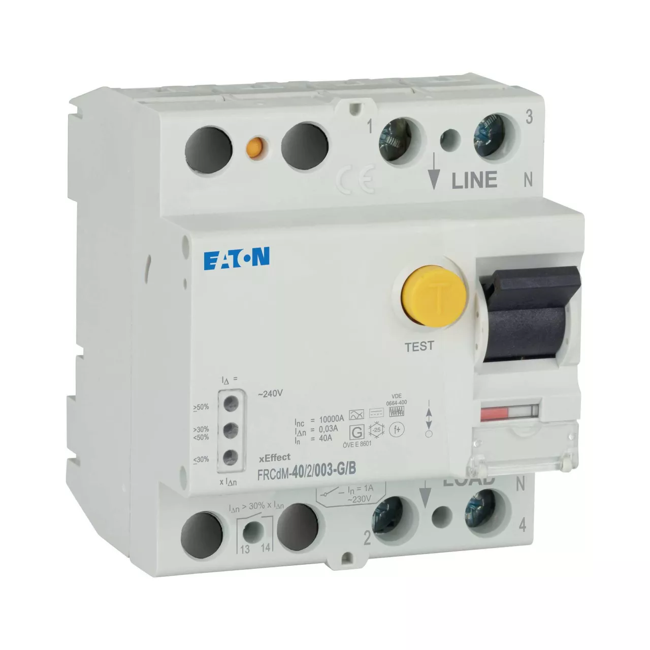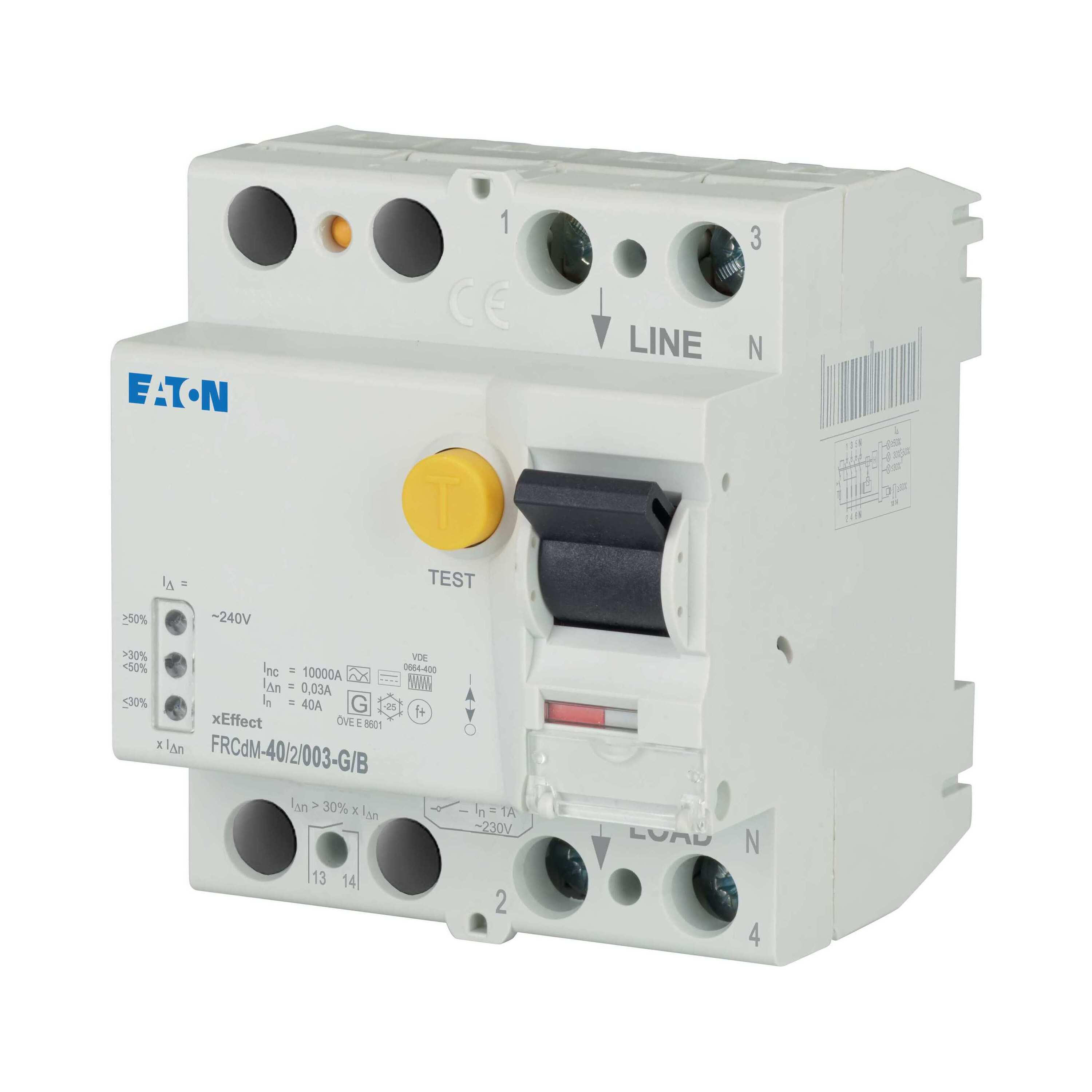 Aardlekschakelaar FRCdM, 2-polig, Nominale stroom In: 40 A, Nominale kortsluitvastheid Icn: 10 met reservezekering kA, Nominale foutstroom IΔN: 0,03 A, Schakelapparatuur industriële en geavanceerde commerciële toepassingen