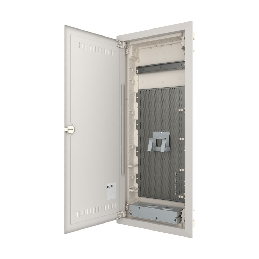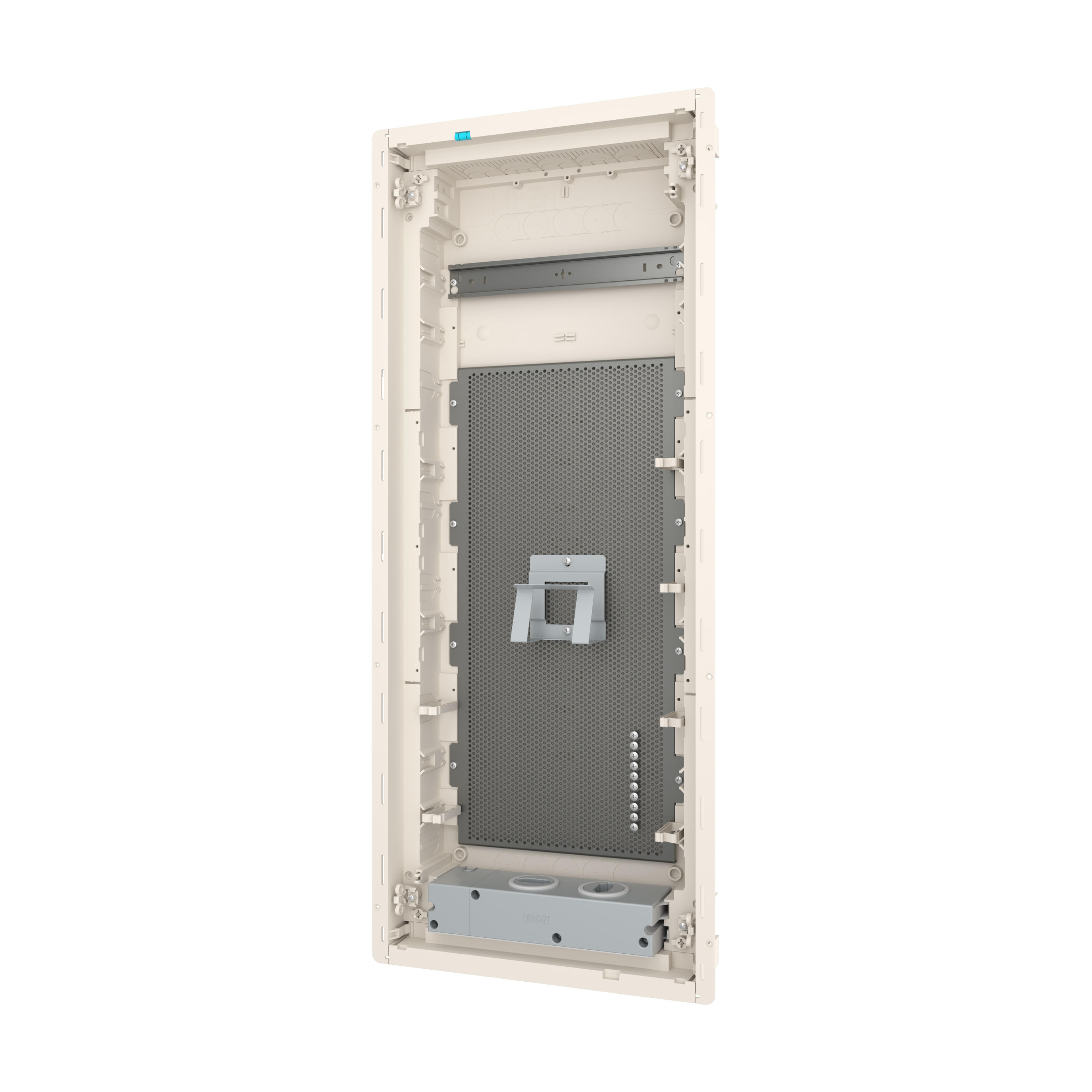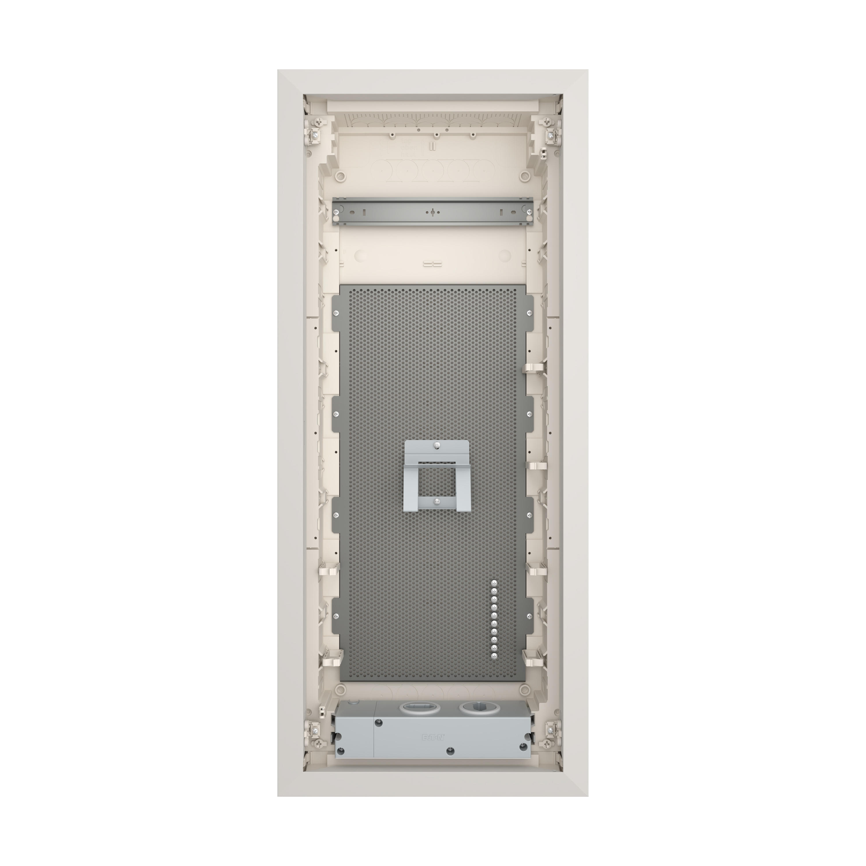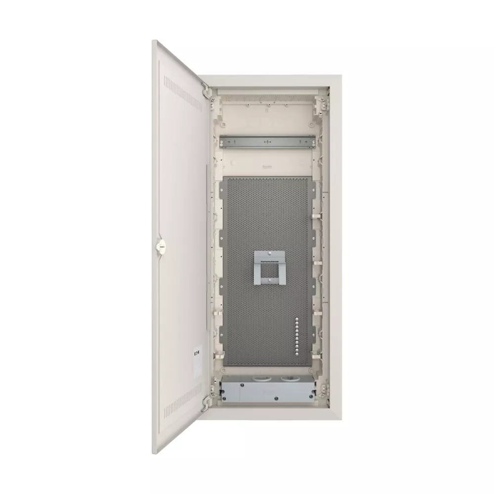 KLV Einbau Mediengehäuse, Kunststoff-Installationsverteiler mit Stahlblechtür mit Lüftungsschlitzen, Beschriftungsfeld in Wandkasten, flaches Türrahmendesign, robuste Tür-Haltenocken, optional mit Sicherheitsverriegelung austauschbar, Kabelbinder für saubere Leitungsführung, umfassendes Zubehörsortiment, Lieferumfang: Gehäuse, 1x Montageschiene, mikroperforierte Grundplatte, 1x Gerätehalter, 2x einfache Steckdose und Euro2-Adapter, Wasserwaage zum Nivellieren, 3D-Einstellelement für Montage zur Einstellung der Montagetiefe um bis zu 18 mm, Kabelbinder, Nagellaschen, Montagehinweise
