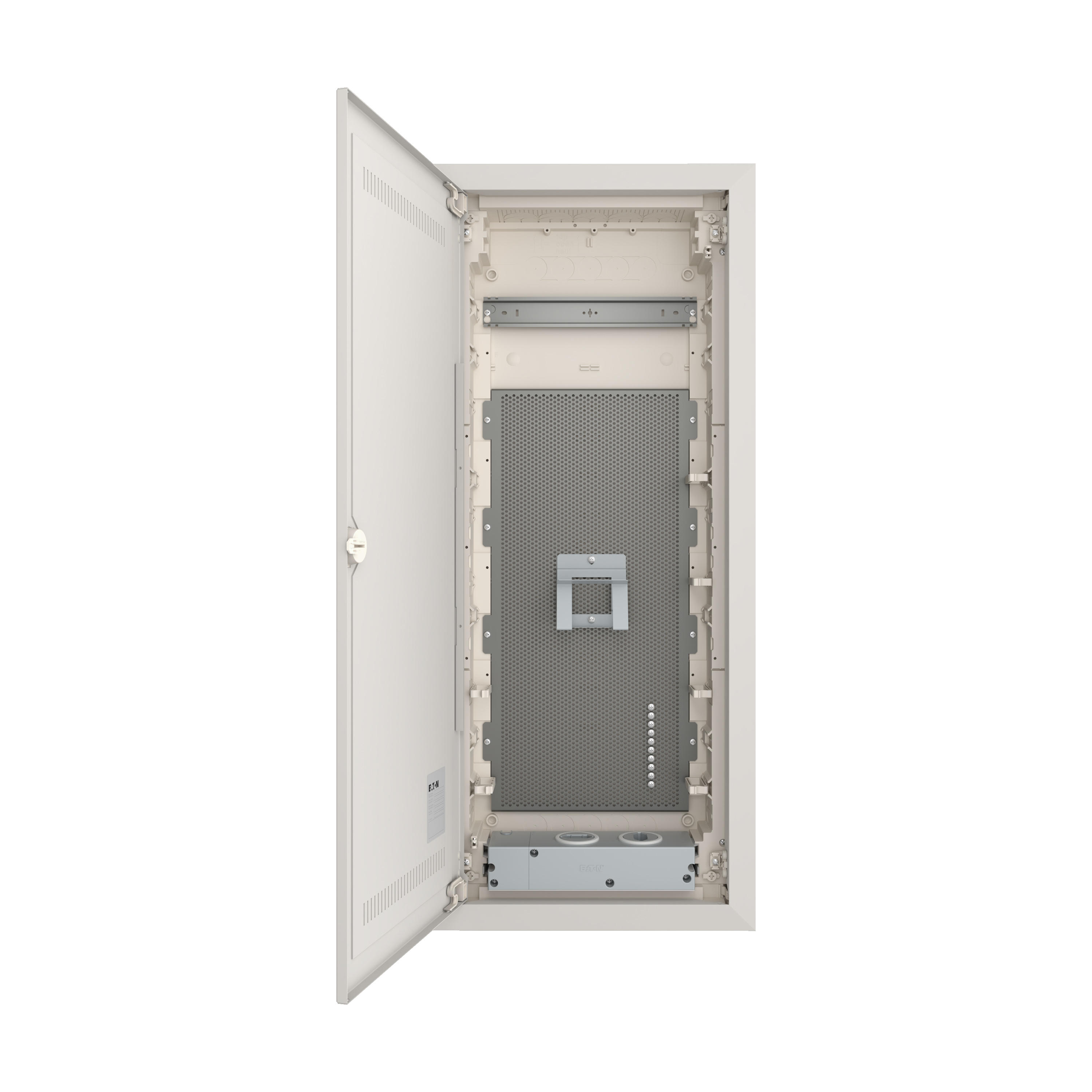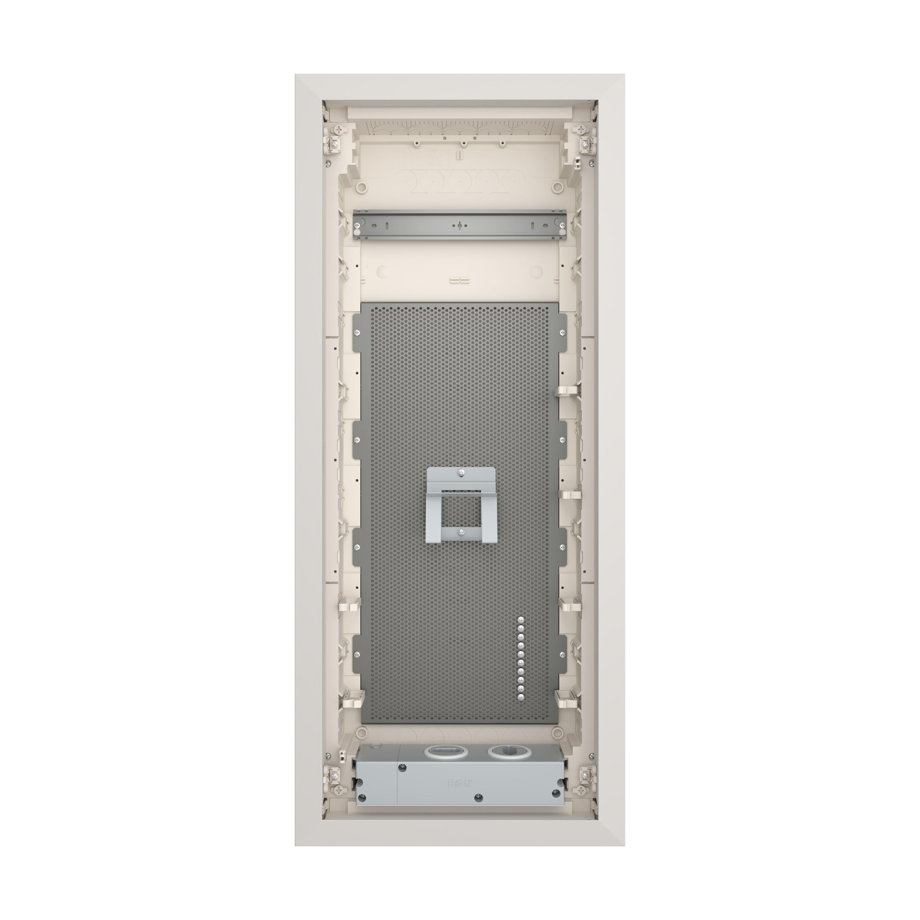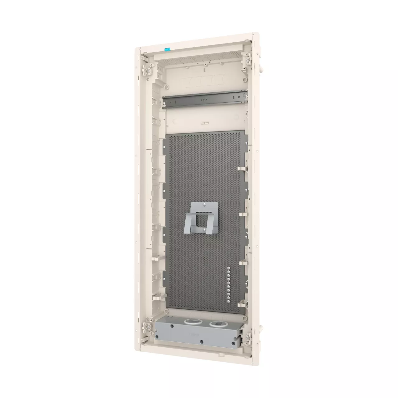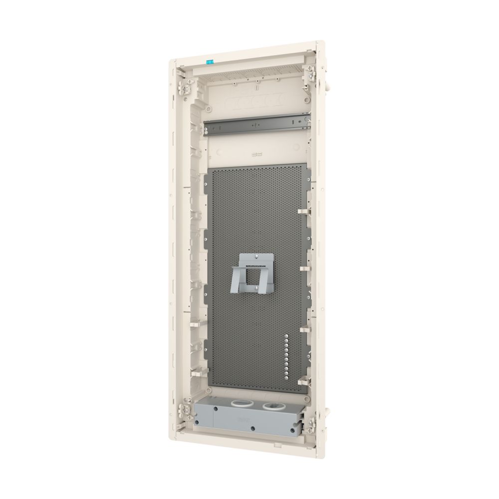 KLV Hohlwand-Multimediaverteiler, Kunststoff-Verteiler mit Stahlblechtür und Belüftungsöffnungen, Beschriftungsfeld in Wandkasten, flaches Türrahmendesign, robuster Türdrehriegel, Optional ersetzbar mit Sicherheitsverriegelung, Kabelhalter für saubere Kabelführung, umfangreiches Zubehör, im Lieferumfang enthalten: Gehäuse, 1x Tragschiene, Mikroperforierte Montageplatte, 1x Geräteträger, 2x einfache Steckdose und Euro2-Adapter, Libelle, 3D-Putzausgleich mit bis zu 18mm Tiefenausgleich, Kabelbinder, Hohlwandanker, Montageanleitung