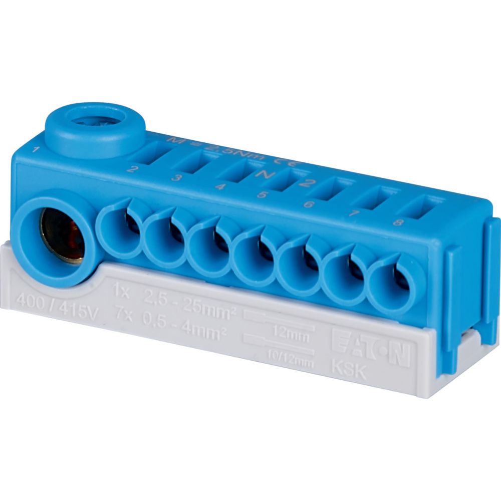 Bestückte Kombi-Steckklemme KSK für Mauerwanne. 1x N-Potenzial, 1x 2,5 bis 25 mm2 und 7x 0,5 bis 4 mm2