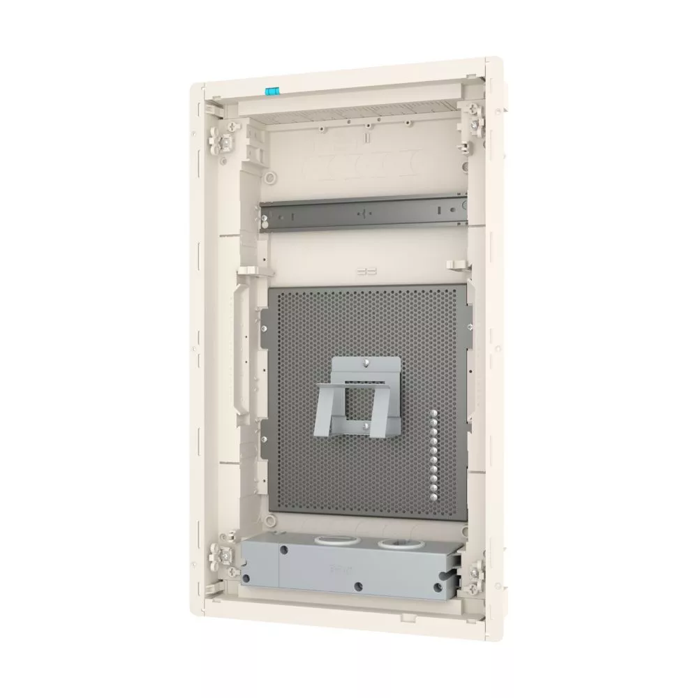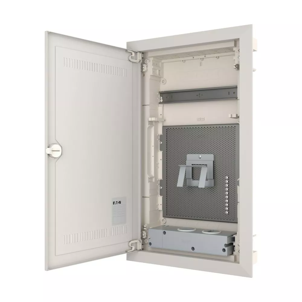 KLV Einbau Mediengehäuse, Kunststoff-Installationsverteiler mit Stahlblechtür mit Lüftungsschlitzen, Beschriftungsfeld in Wandkasten, flaches Türrahmendesign, robuste Tür-Haltenocken, optional mit Sicherheitsverriegelung austauschbar, Kabelbinder für saubere Leitungsführung, umfassendes Zubehörsortiment, Lieferumfang: Gehäuse, 1x Montageschiene, mikroperforierte Grundplatte, 1x Gerätehalter, 2x einfache Steckdose und Euro2-Adapter, Wasserwaage zum Nivellieren, 3D-Einstellelement für Montage zur Einstellung der Montagetiefe um bis zu 18 mm, Kabelbinder, Nagellaschen, Montagehinweise