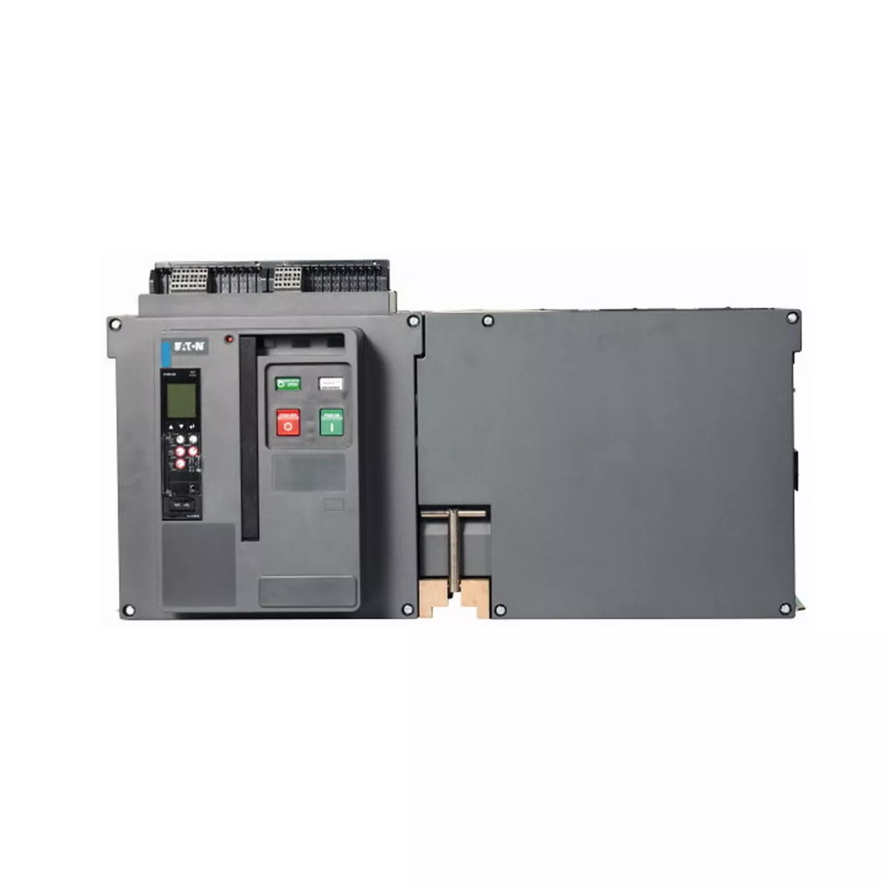 Leistungsschalter IZM63 (Offene Leistungsschalter/Trennschalter), 3-polig, Strombereich: 4000 bis 6300 A, Bemessungsstrom = Bemessungsdauerstrom (In = Iu): 6300 A, Bemessungs-Grenz-Ausschaltvermögen im Kurzschluss bis 440 V/690 V 42/42 (Icu): 85kA, Bemessungs-Betriebs-Ausschaltvermögen im Kurzschluss bis 440 V/690 V 42/42 (Ics): 85kA, Überlastauslöser, min. (Ir): 2520 A, Überlastauslöser, max. (Ir): 6300 A, Installationsart: Festeinbau, Standard/Genehmigung: IEC, Schutzfunktion: Universalschutz mit Leistungsmessung