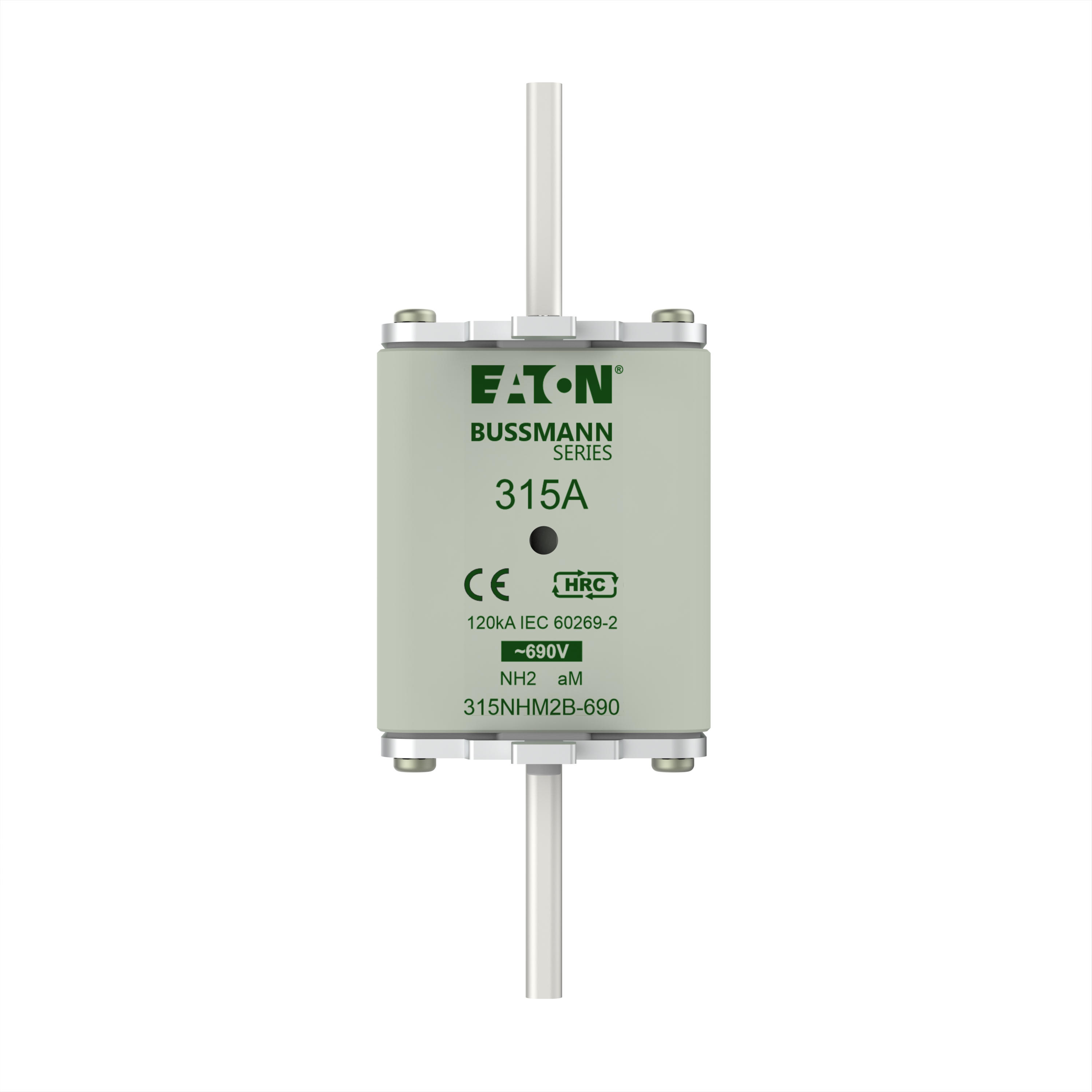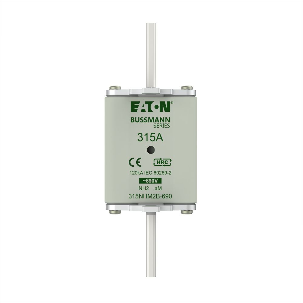 Bezpiecznik, wkładka bezpiecznikowa, niskie napięcie, 315 A, AC 690 V, NH2, aM, IEC, Układ podwójnego sygnalizatora (kombinacja), korpus kwadratowy ze stykami nożowymi, ruchome uchwyty, IEC 60269-2 układ bezpiecznikowy A, DIN 43620, VDE 0636-2. Zdolność wyłączania 120 kA