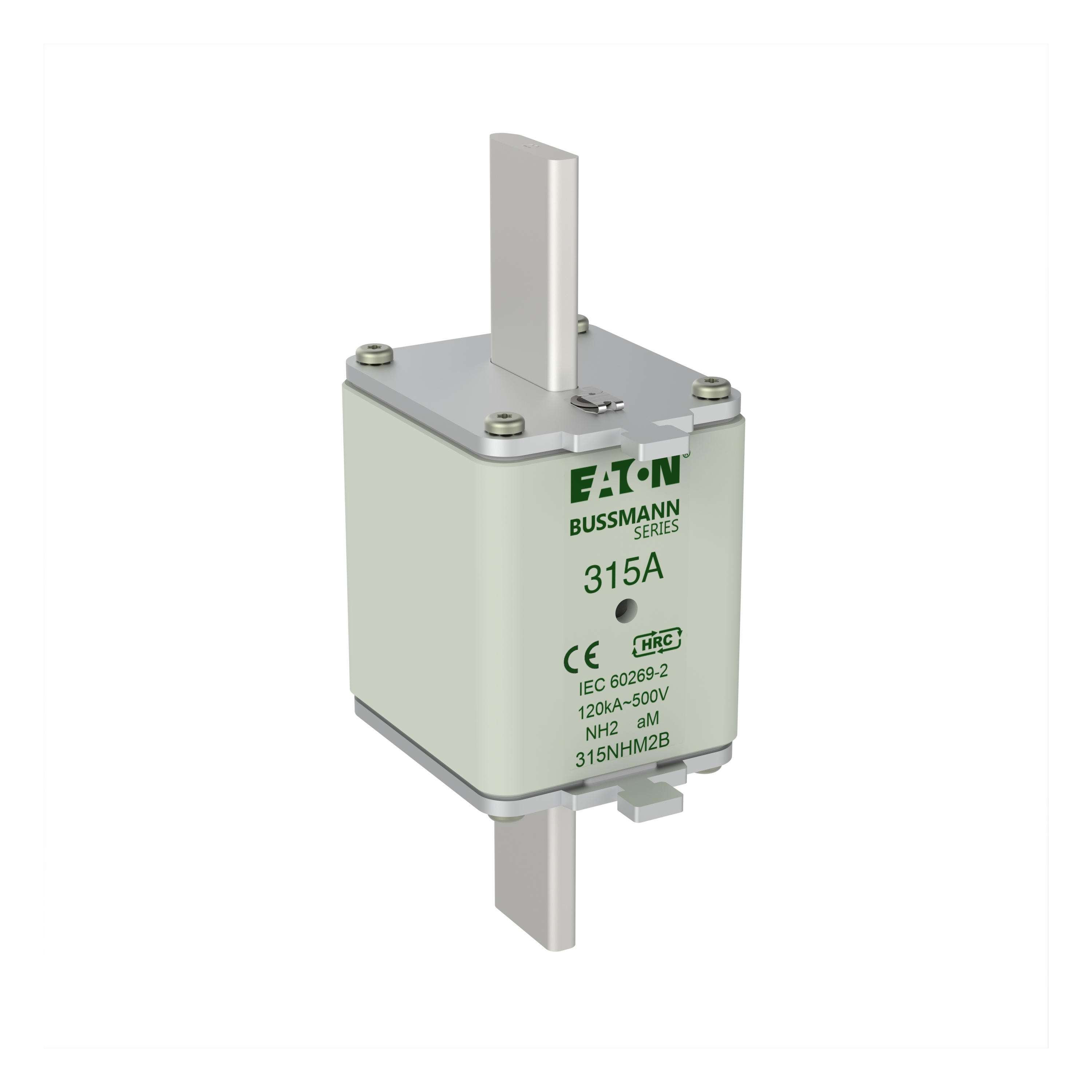 Bezpiecznik, Wkładka bezpiecznikowa, Niskie napięcie, 315 A, AC 500 V, NH2, aM, IEC, sygnalizator podwójny, korpus kwadratowy ze stykami nożowymi, ruchome uchwyty, IEC 60269-2 układ bezpiecznikowy A, DIN 43620, VDE 0636-2, Zdolność wyłączania 120 kA