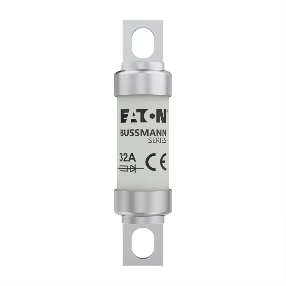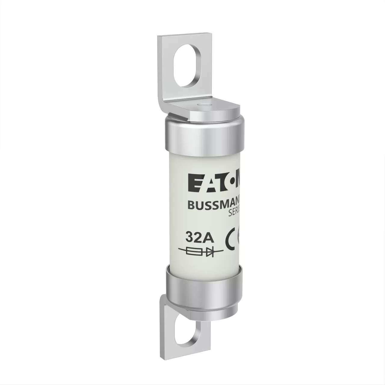 Bezpiecznik, wkładka topikowa, szybka 32 A, AC 690 V, DC 500 V, BS88, 19 x 77 mm, aR, BS, przesunięte zaciski przykręcane, zabezpieczenie szyny wspólnej DC, napędy DC, przekształtniki mocy / prostowniki oraz softstartery, BS88-4, IEC 60269-4, zdolność wyłączania 200 kA