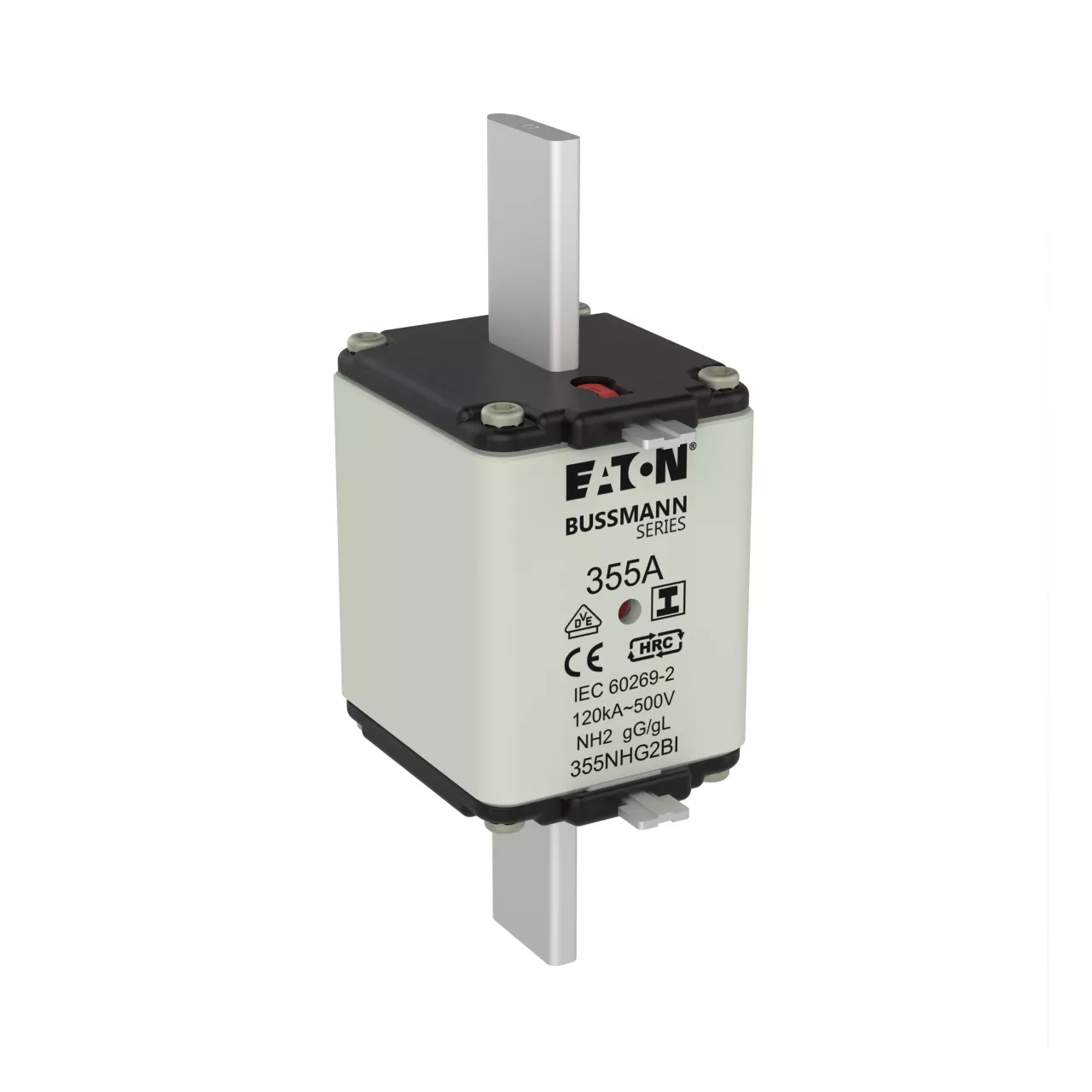 zekering, zekeringelement, Lage spanning, 355 A, AC 500 V, NH2, gL/gG, IEC, dubbel (combinatie-) meldersysteem, vierkant huis met mescontacten, geïsoleerde grepen, IEC 60269-2 zekeringsysteem A, DIN 43620, VDE 0636-2, uitschakelvermogen 120 kA