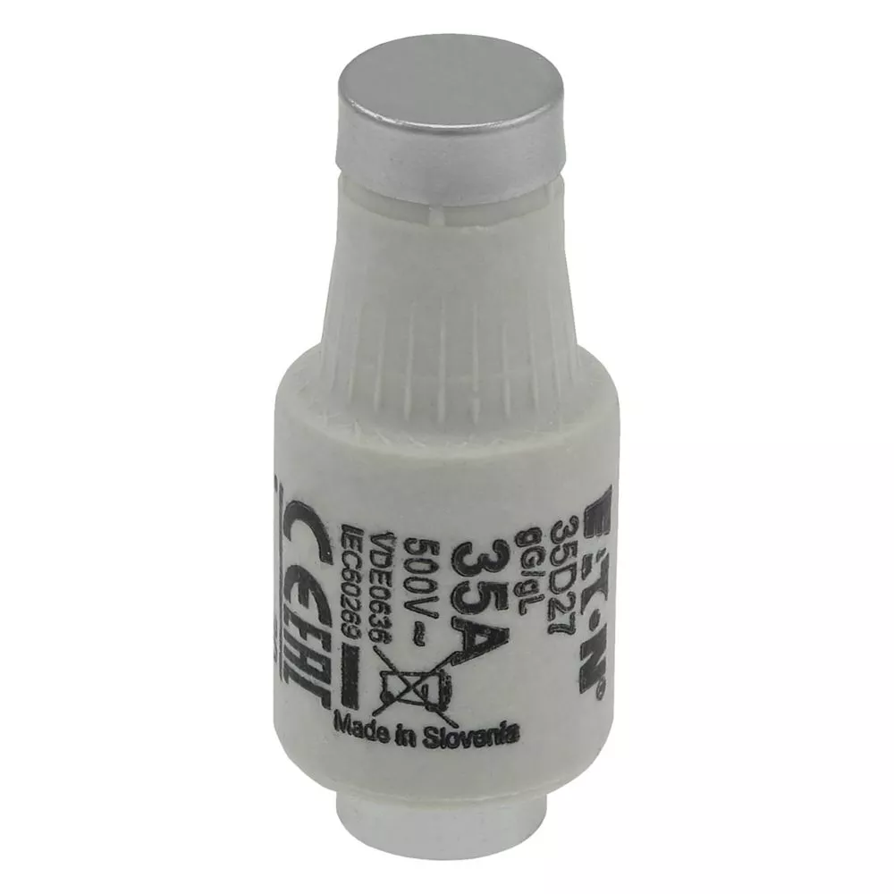 Zekering, zekeringelement, laagspanning, 35 A, AC 500 V, D2, gL/gG, IEC, traag, fles, E27, IEC 60269-3, VDE 0636, afschakelvermogen 50 kA