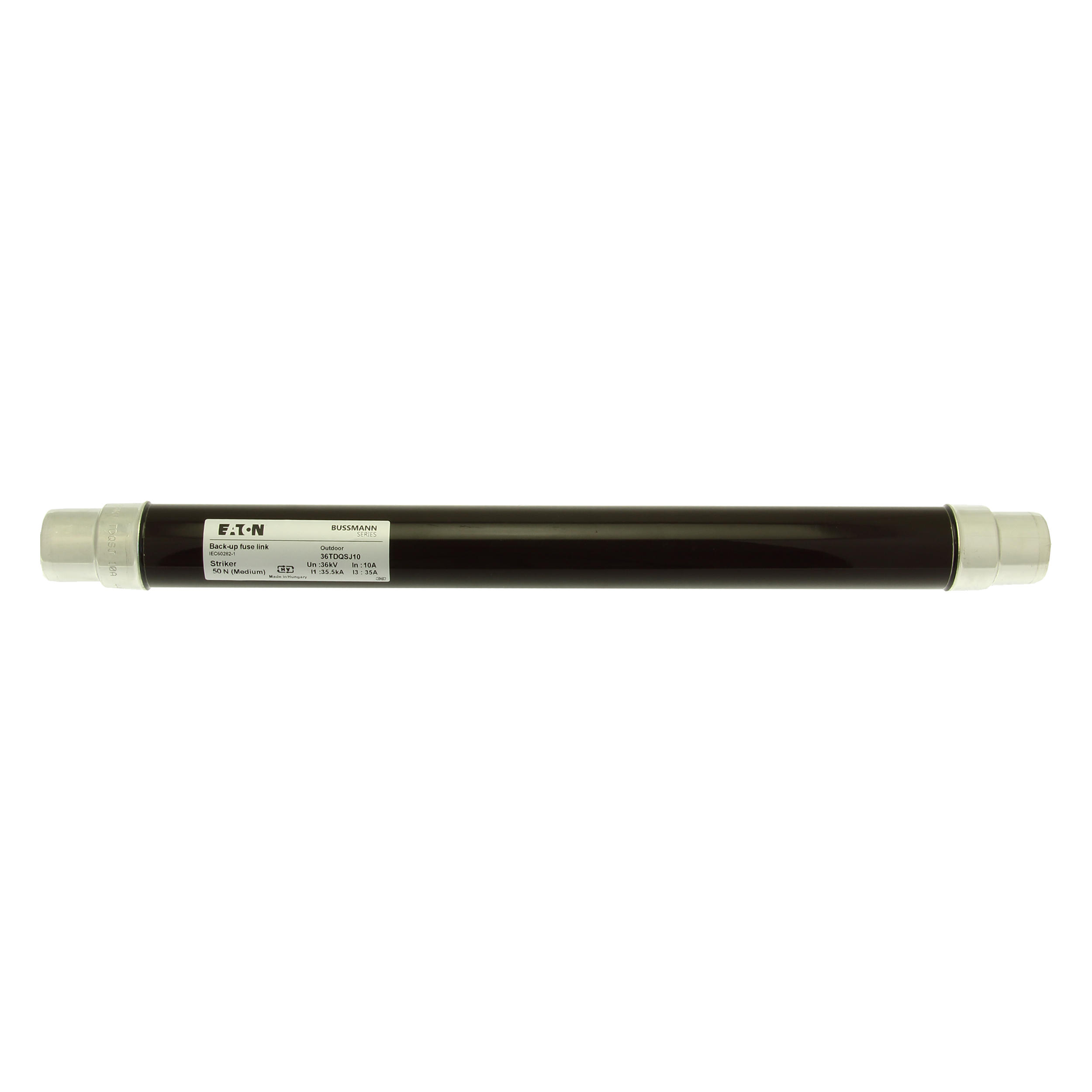 Sicherung, Sicherungseinsatz, Mittelspannung, 20 A, AC 36 kV, 2 Zoll, 51 x 537 mm, Pufferung, DIN, mit Schlagmelder, Transformatorschutz, Einsatz im Innen- oder Außenbereich, DIN 43625, VDE 0670 Teil 4, VDE 0670 Teil 402, IEC 60282-1, Ausschaltvermögen 35,5 kA