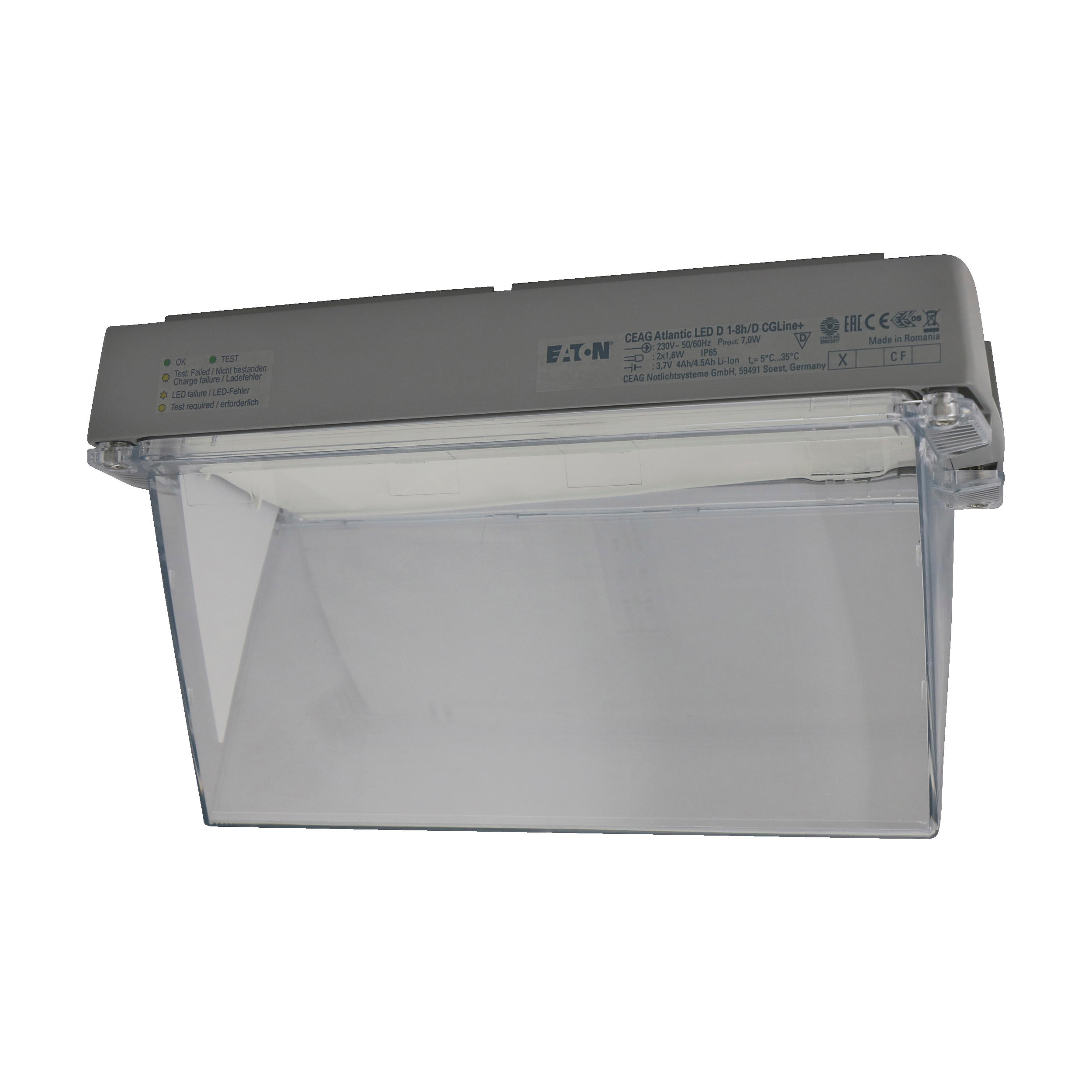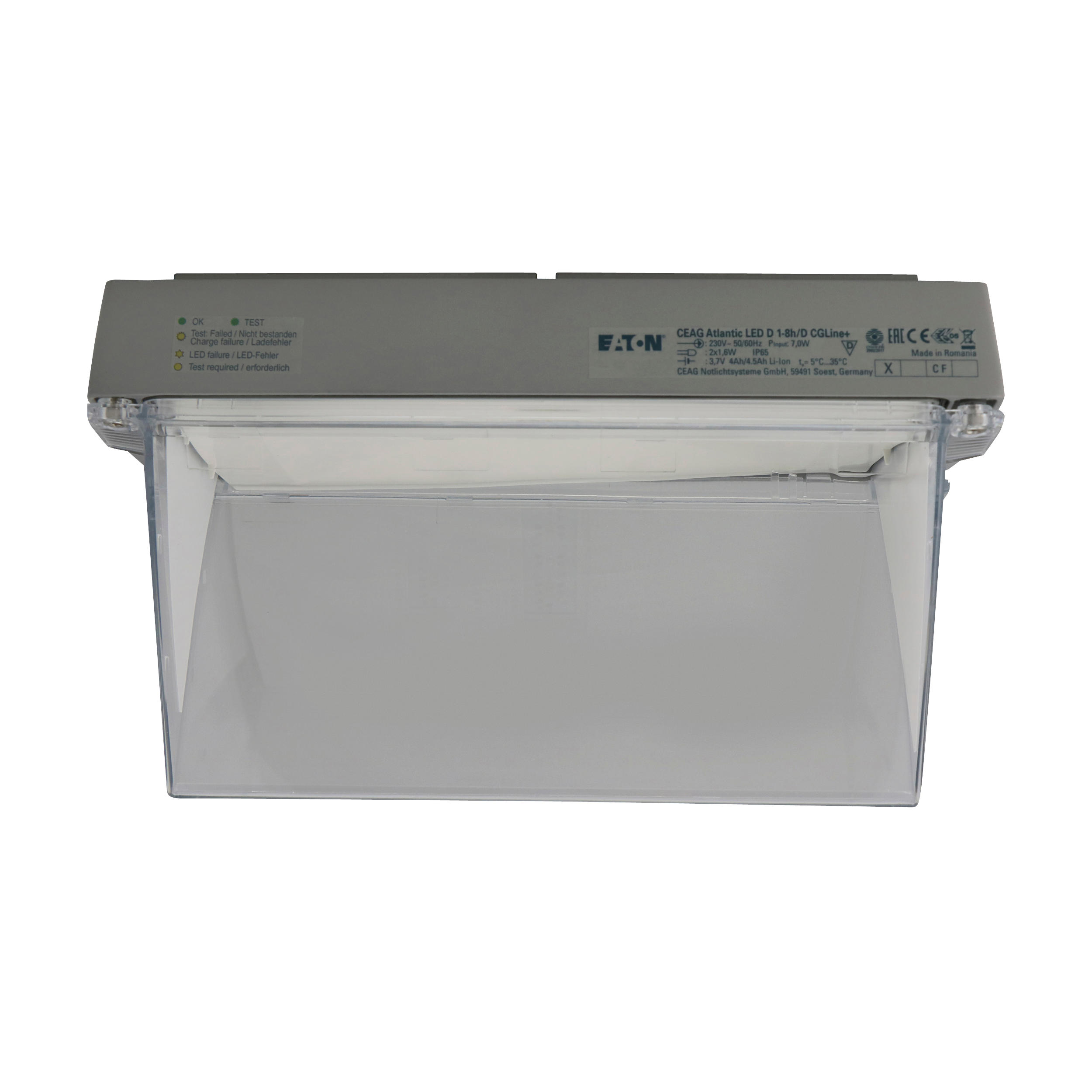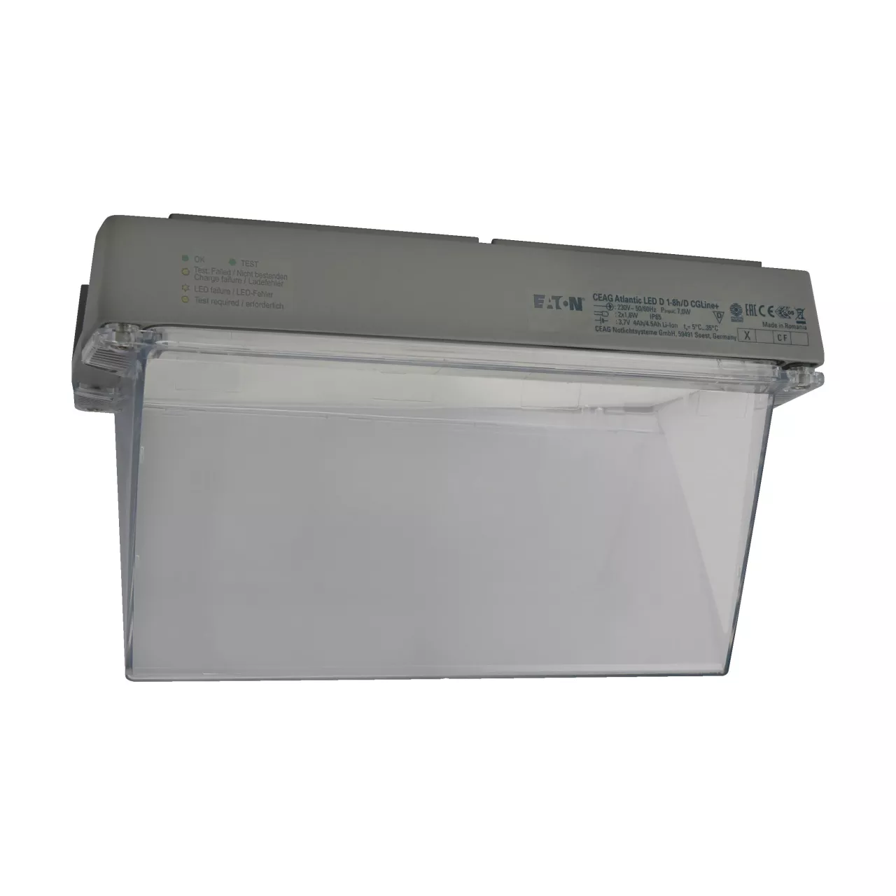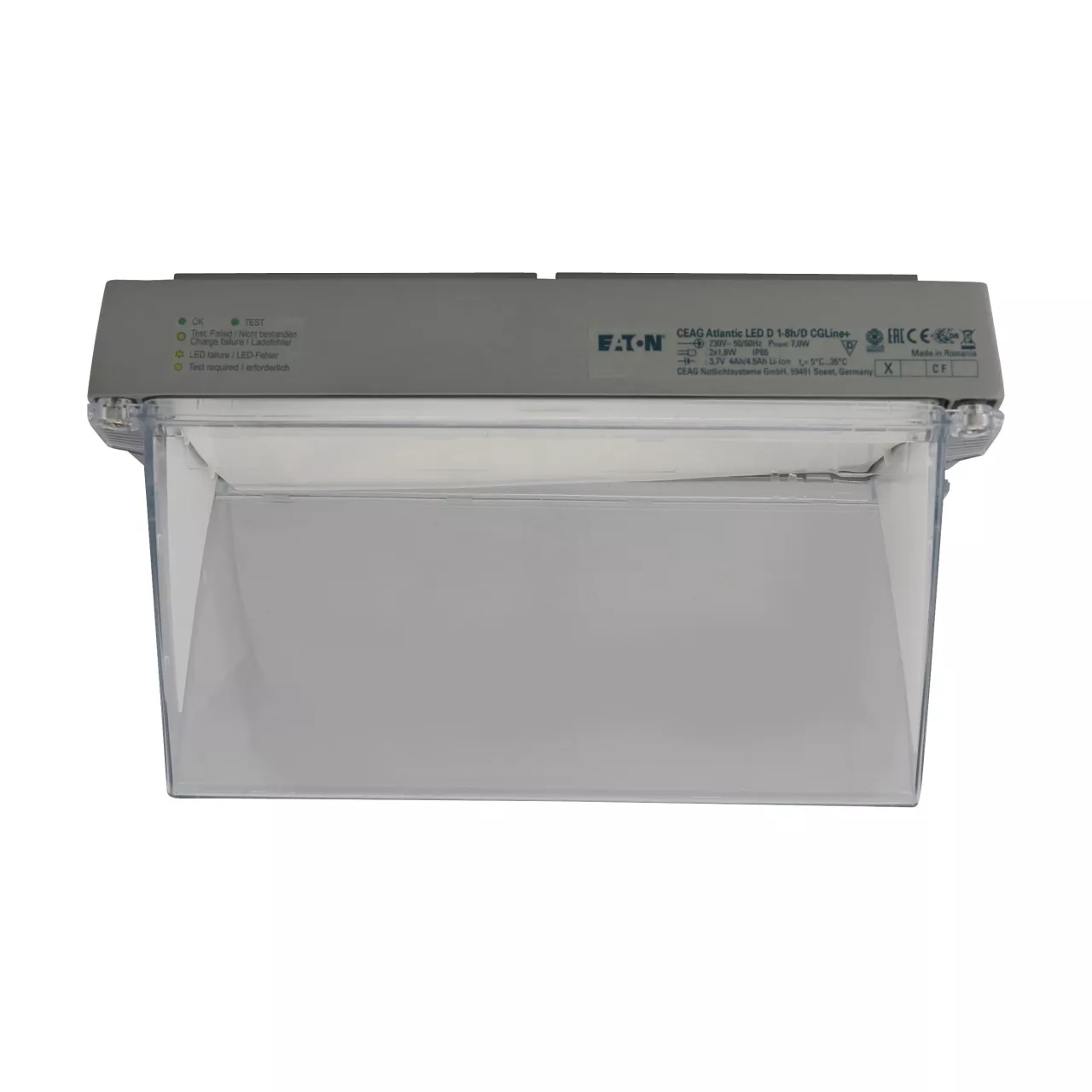 Eaton Atlantic LED, Rettungszeichen, 24 m Erkennungsweite, doppelseitig, CGLine + Technologie, LED, Dauer-/Nichtdauerbetrieb, IP65, 1 h/ 3 h/ 8 h wählbare Betriebsdauer