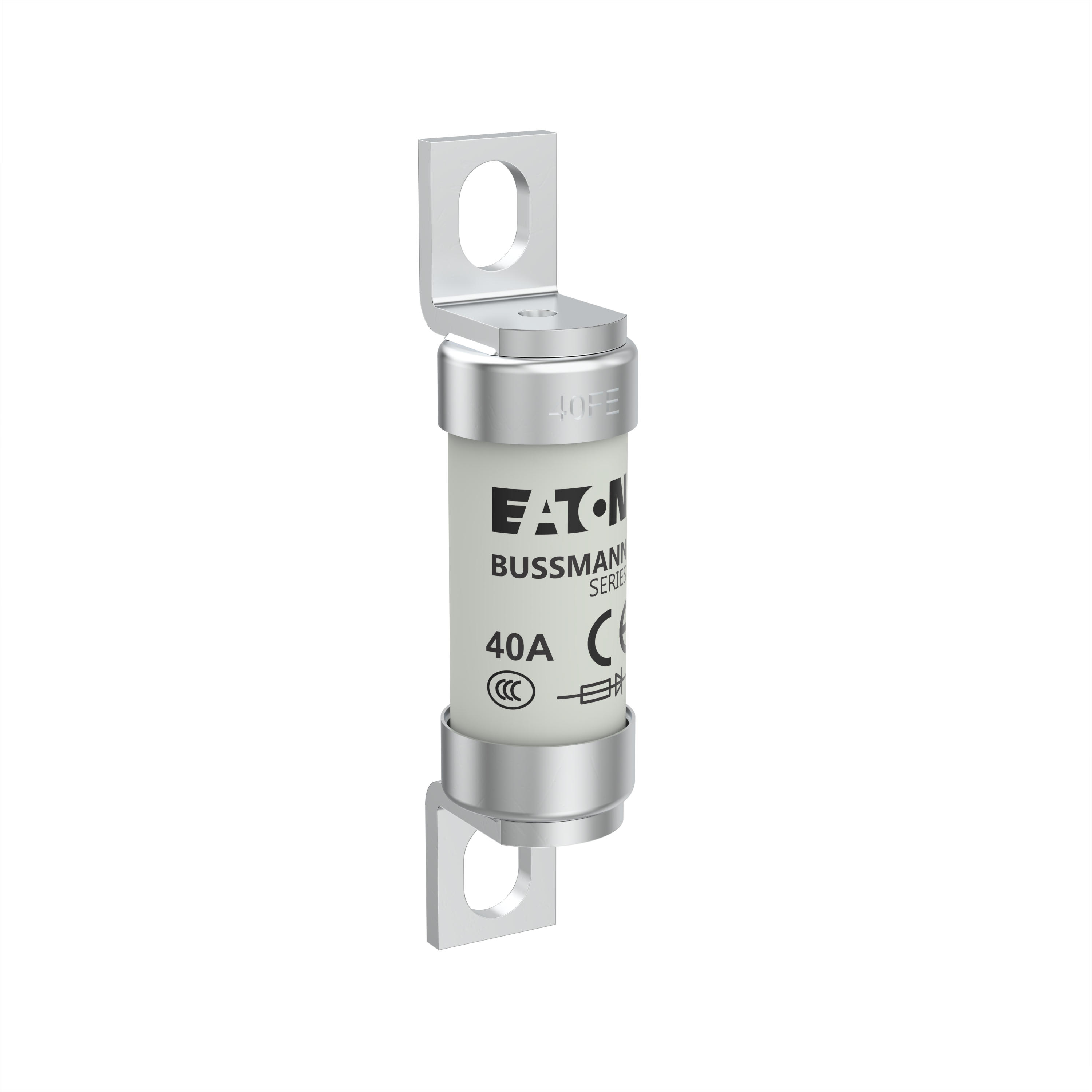 Sicherung, Sicherungseinsatz, superflink, 40 A, AC 690 V, DC 500 V, BS88, 19 x 77 mm, aR, BS, gekröpfte verschraubte Anschlussfahnen, Gemeinsamer DC-Bus Schutz, DC-Antriebe, Leistungsumrichter/Gleichrichter und Anlasser mit reduzierter Spannung, BS88-4, IEC 60269-4, Ausschaltvermögen 200 kA, Optionale Zusatzausrüstung Sicherungshalter BH-0111