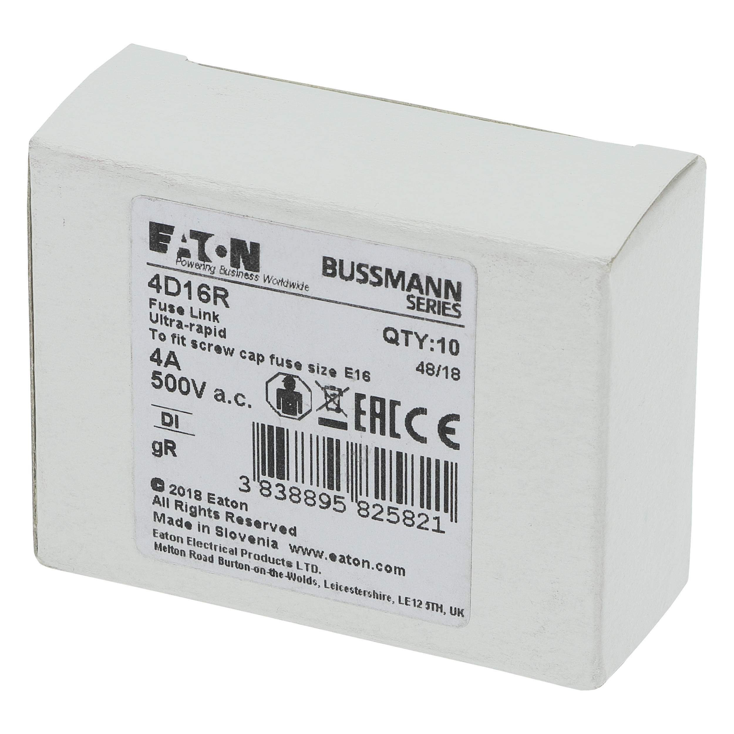 Zekering, zekeringelement, laagspanning, 4 A, AC 500 V, D1, gR, IEC, ultrasnel, fles, E16, IEC 60269-3, VDE 0636, afschakelvermogen 50 kA