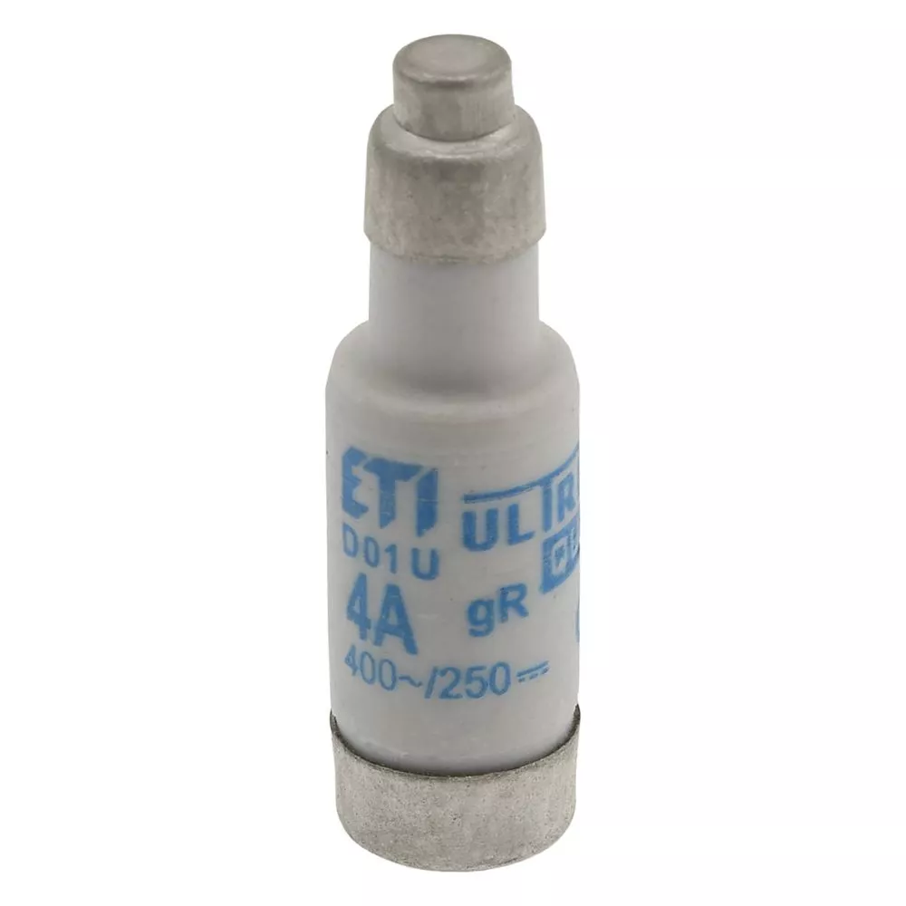 Zekering, zekeringelement, laagspanning, 4 A, AC 400 V, D01, gR, IEC, ultrasnel, E14, voor huishoudelijke en algemeen industriële toepassingen, IEC 60269-3, VDE 0636